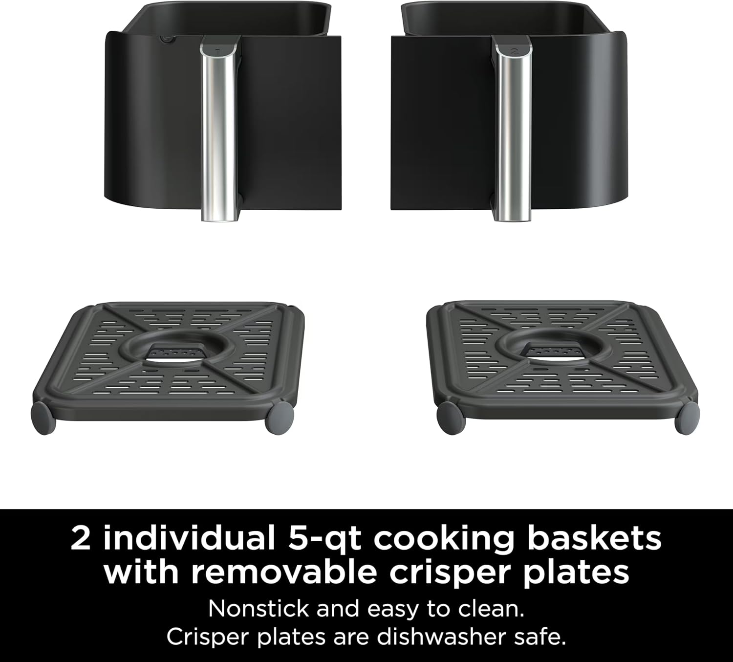 - DUALZONE TECHNOLOGY: The Smart Finish feature, unlocks cooking 2 foods 2 ways that finish at the same time, or the Match Cook feature, easily copies settings across zones for full 10-qt. capacity.