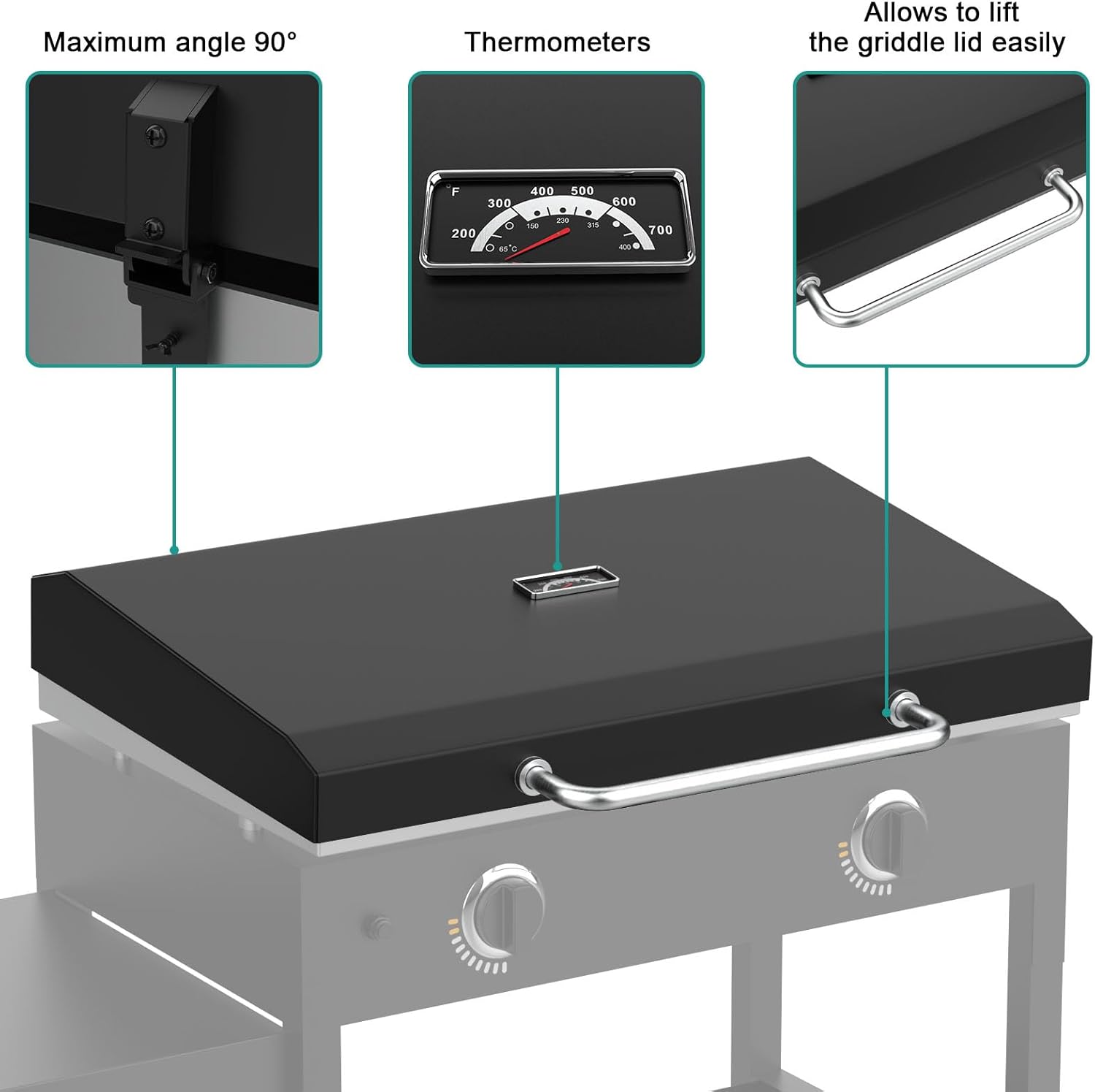 - 【Hard Cover with Thermometer】Our griddle lid come with a thermometer to monitor the temperature inside the griddle more accurately and in real time compared to other brands, making it easier to cook delicious food.