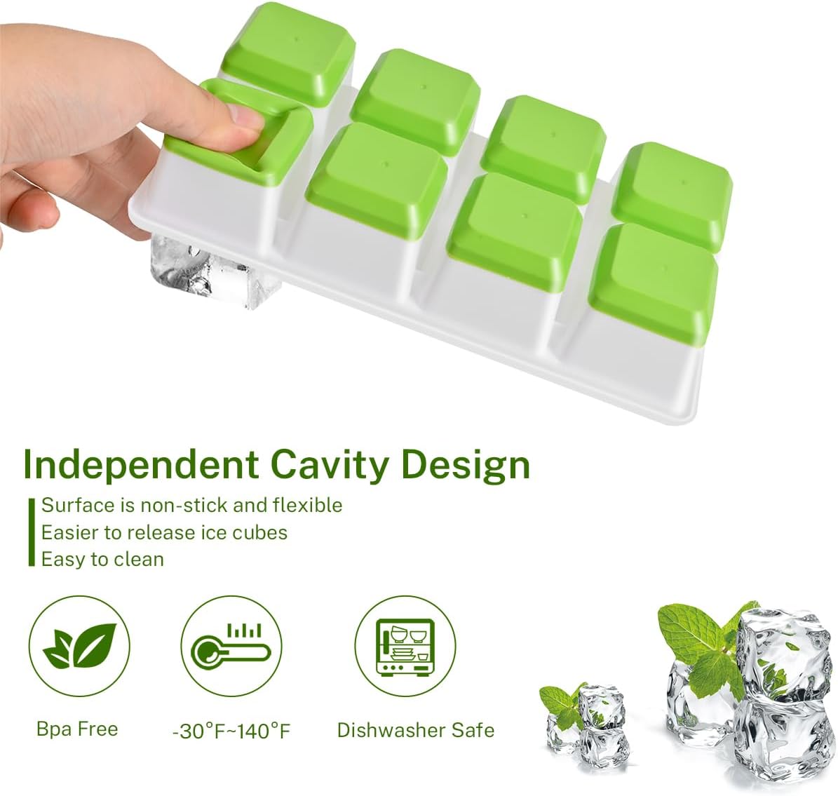 - 【 Large, Slow-Melting Ice Cube】With 8 large compartments per ice tray, these ice cube tray create slow-melting ice cubes that keep drinks chilled without dilution, preserving the original flavor of your beverages. Each set includes 3 ice tray, making 24 large ice cube—perfect for whiskey, cocktails, and more.