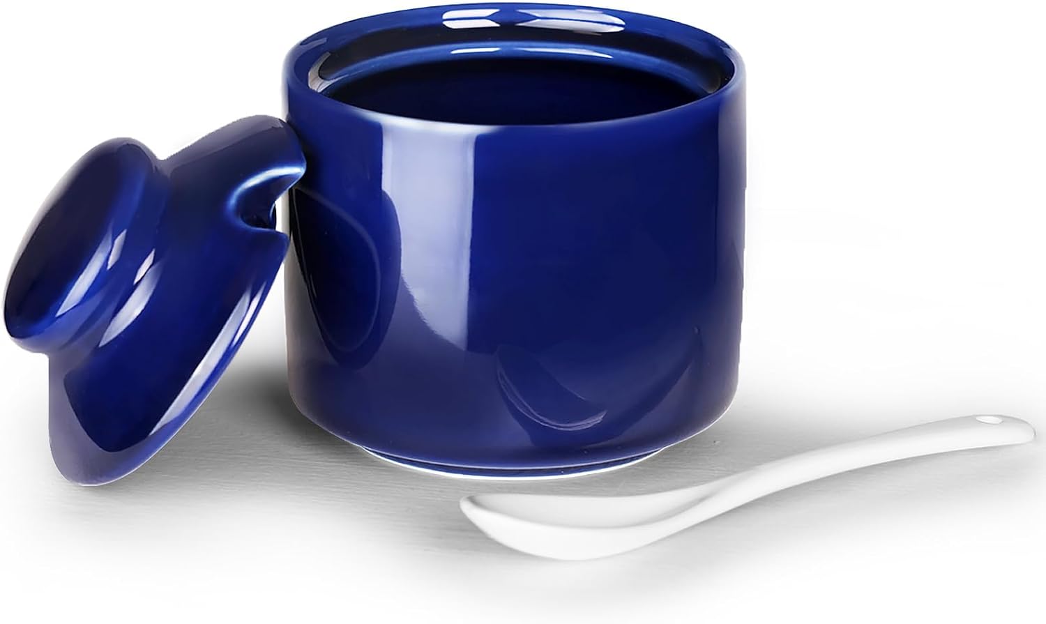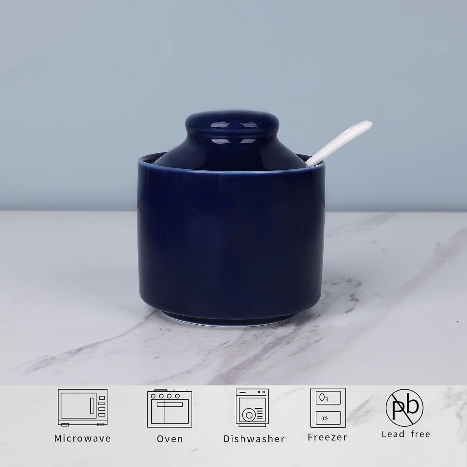 - DESIGN CONCEPT: This sugar bowl is equipped with a lid and a small spoon. The lid can keep your ingredients away from dust. There is a perfect notch on the lid for placing the spoon, so you don’t have to worry about placing the spoon randomly