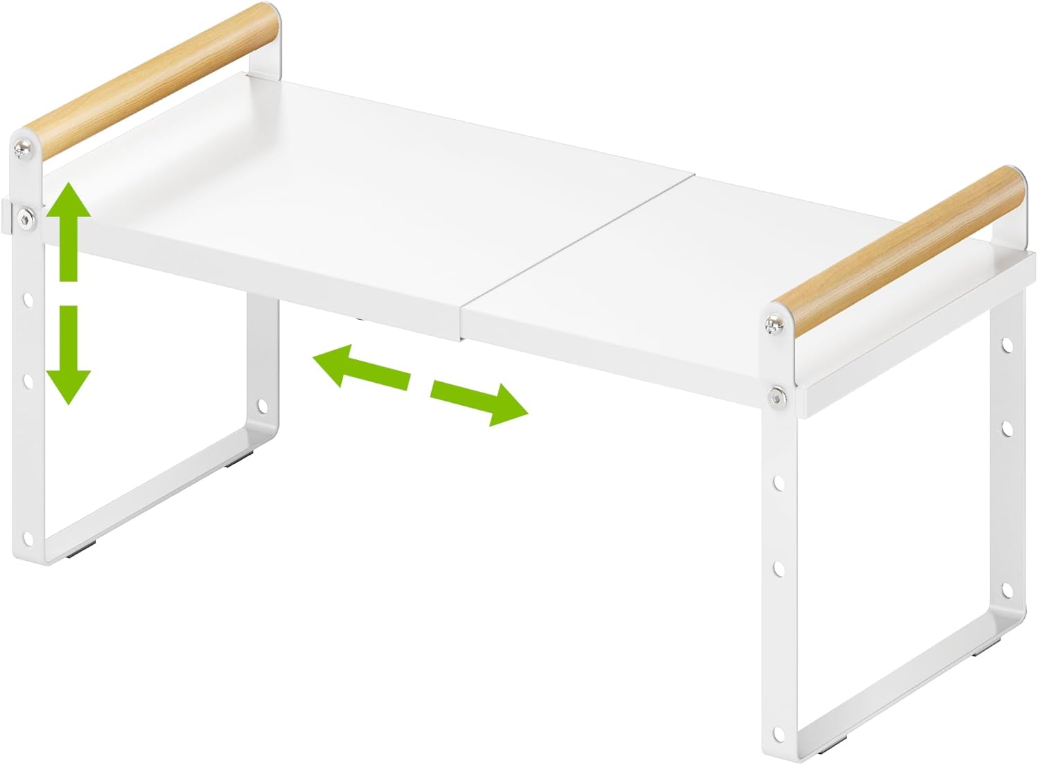- ăExpandable & Stackable Cabinet OrganizerăThe length and height of this shelf can be adjusted, The length of expandable shelf can be adjusted from 12.87 to 21.04 Inches according to the different space; The Height can be adjusted from 5.3 inches to 7.68 Inches depending on how you want to arrange your space.