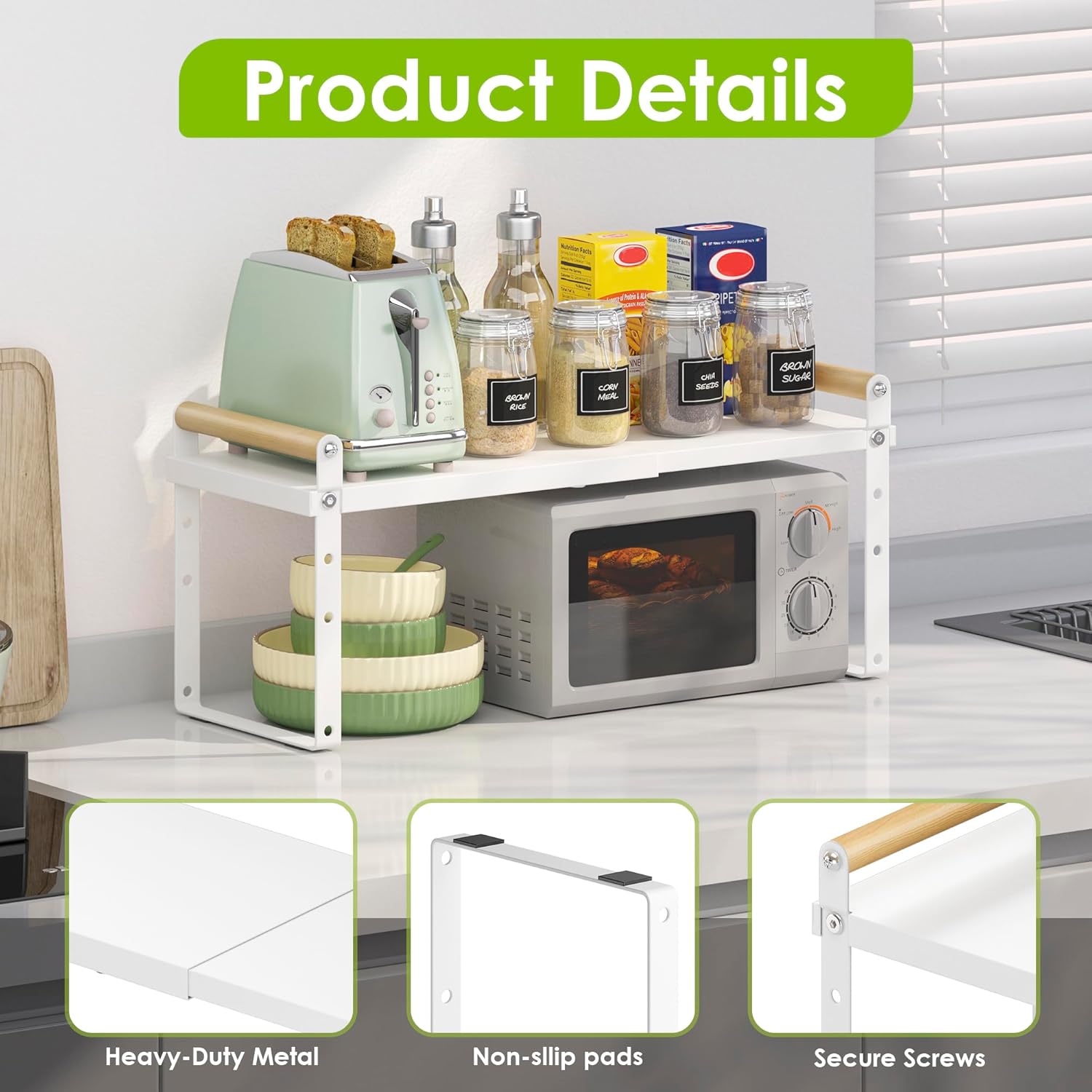 - ăMultifunctional Storage ShelvesăSay goodbye to the chaos kitchen area! With the help of this kitchen shelf, you can save a lot of space for cooking, make your kitchen clean and neat;They can also be placed inside a cabinet closets, pantry cupboards, bathroom countertop.