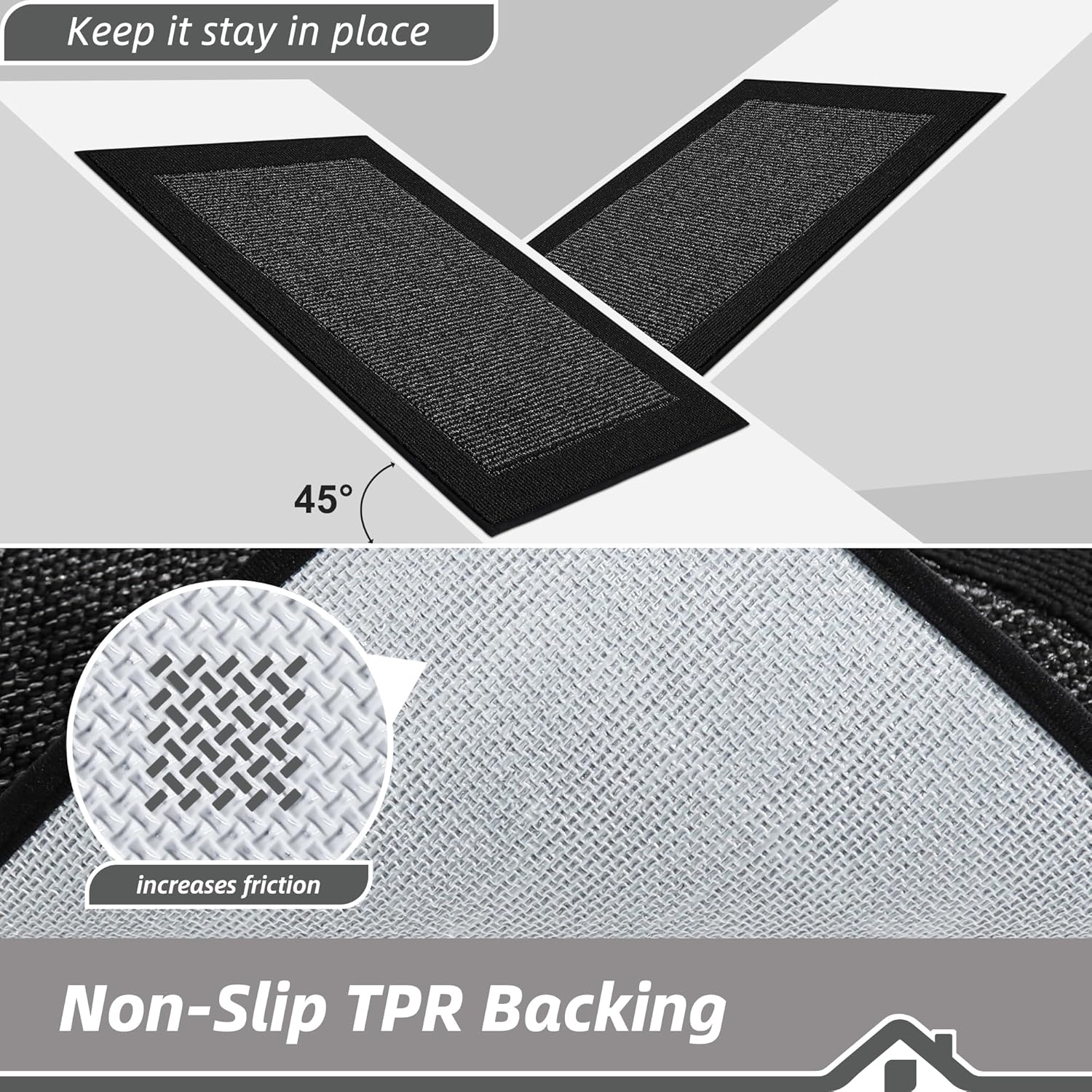 - Non-Slip Backing: The rugs for kitchen are designed with TPR anti-skid backing that ensures the kitchen mats stay firmly on your floor, minimizing the risk of slips, trips, and falls. NOTE: Please make sure the floor is clean and dry before placing