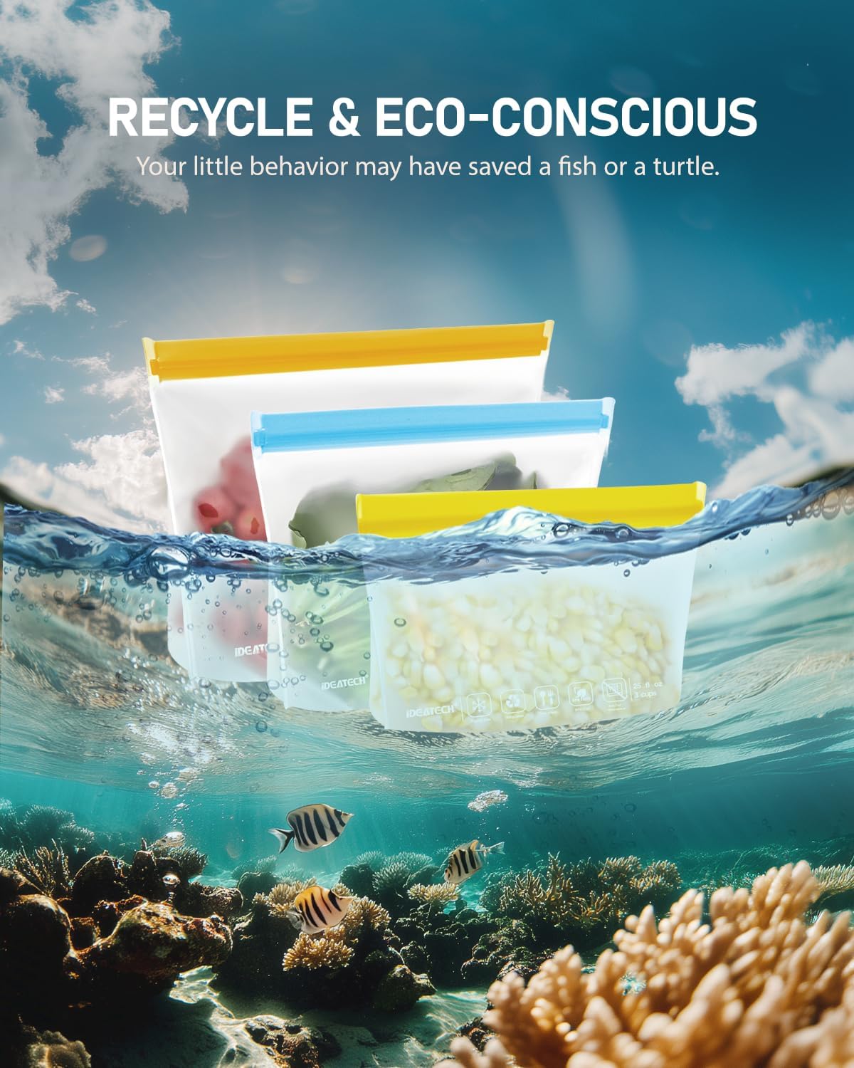 IDEATECH Food Storage Bags, BPA Free PEVA Reusable Gallon Freezer Bags, Reusable Sandwich Containers, Heallthy Food Bags Containers for Travel, Lunch(Grey, 24Pack-8Gallon+8Quart+8Snack)
