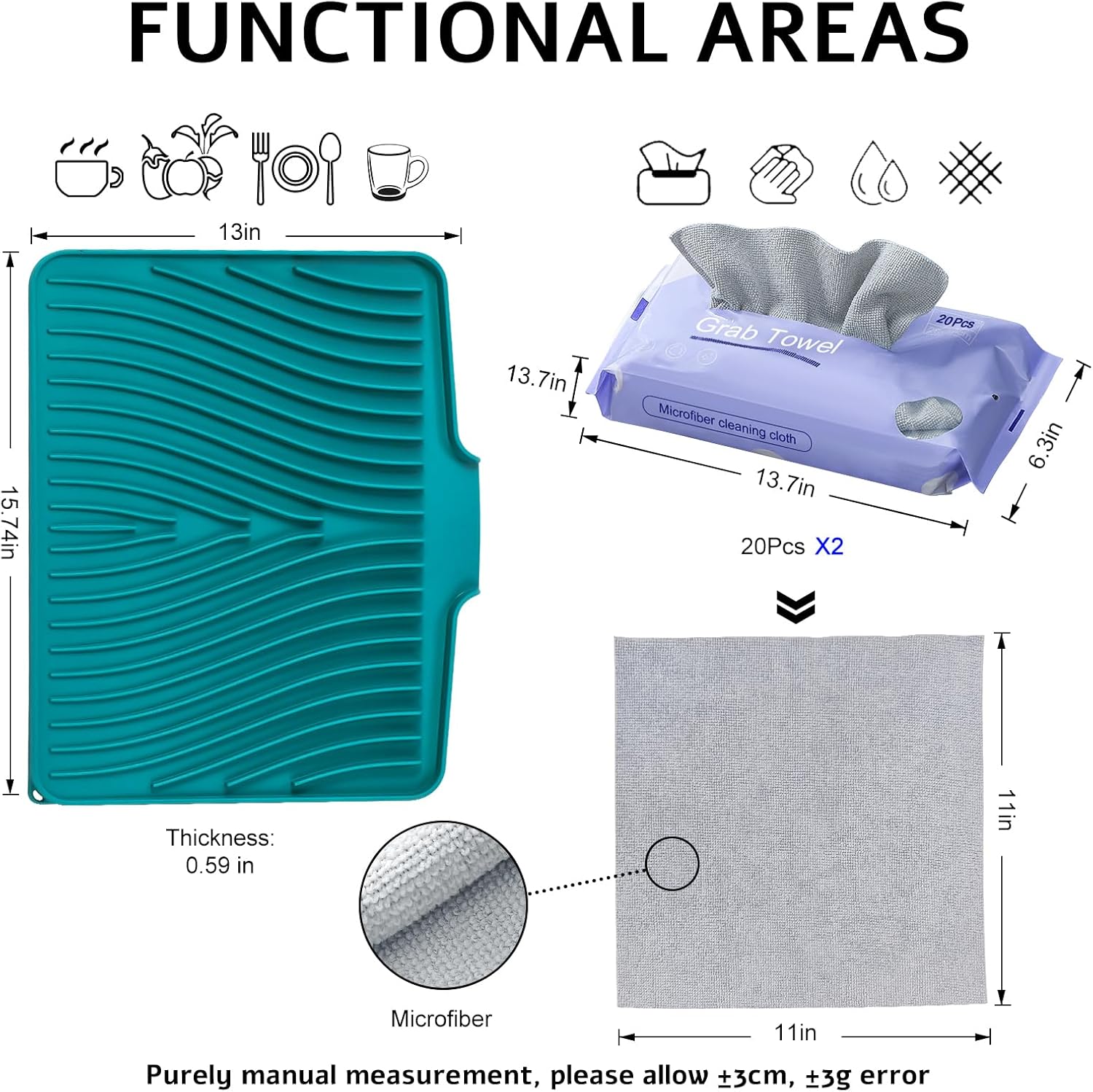 - Non-Slip drying mat: TIKNIK 2-pack drying matt kitchen counter measures 15.8" x 13" x 0.59"(L x W x H). With non-slip effect, it can prevent cutlery tableware, vegetables, fruits or glassware from sliding off.