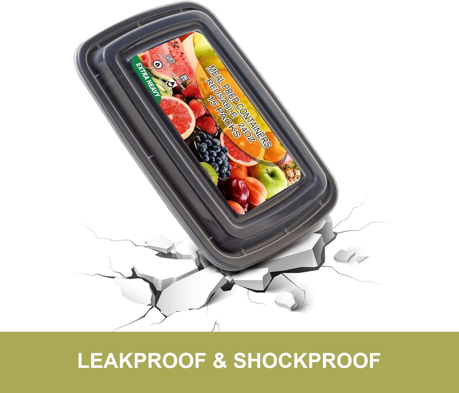 15 Pack Meal Prep Containers Reusable 24oz, Plastic Food Prep Containers, Leakproof To Go Food Containers with Lids, BPA-Free, Microwave/Dishwasher/Freezer Safe