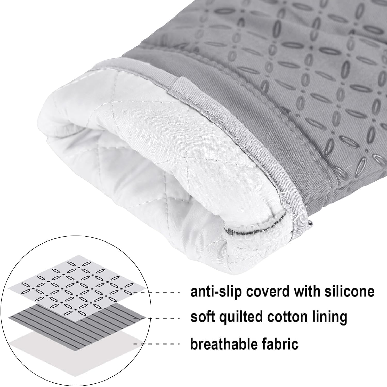 KEGOUU Oven Mitts and Pot Holders 6pcs Set, Kitchen Oven Glove High Heat Resistant 500 Degree Extra Long Oven Mitts and Potholder with Non-Slip Silicone Surface for Cooking (Light Gary)