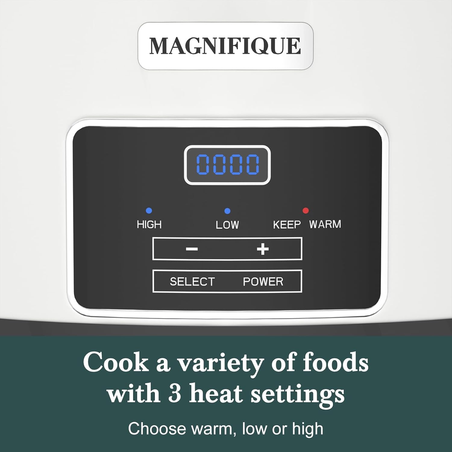 - The slow cooking function of the MAGNIFIQUE Oval Digital Slow Cooker ensures tender and flavorful results, as it gently cooks ingredients over a longer period of time