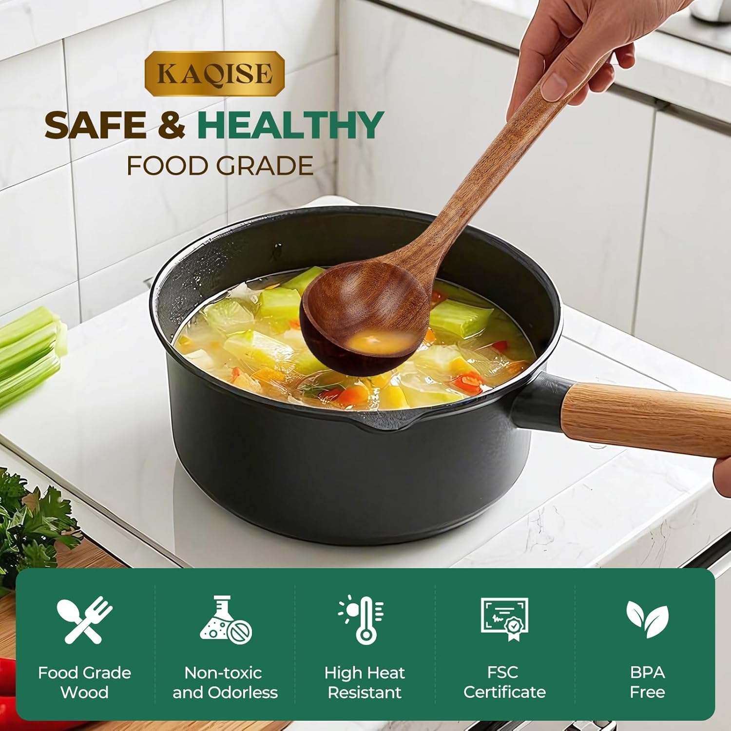 - 【Premium Quality Teak Wood】Our Kitchen Premium Wooden Utensils are crafted from high-quality teak wood, known for its strength and elegant appearance. These utensils, including the Wooden Spaghetti Spoon and Soup Ladle, are built to last and provide exceptional performance, making them a reliable addition to your Wooden Spoon Set for all your cooking tasks.