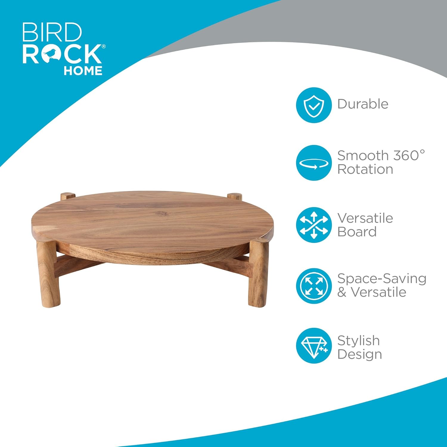 BIRDROCK HOME Elevated Lazy Susan | Rotating Acacia Wood Platter with Raised Legs | Ideal for Serving, Organizing, and Decor | Smooth 360° Rotation (Natural, Medium)