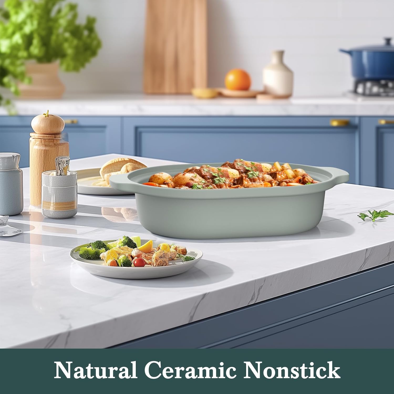 - Versatile cooking pot:Heat-resistant porcelain liner is microwave or a oven safe up to 450°F. In addition, ceramic nonstick coating, free from PFAS, PFOA, PTFE, lead, and cadmium, ensures a safe and easy cooking experience.