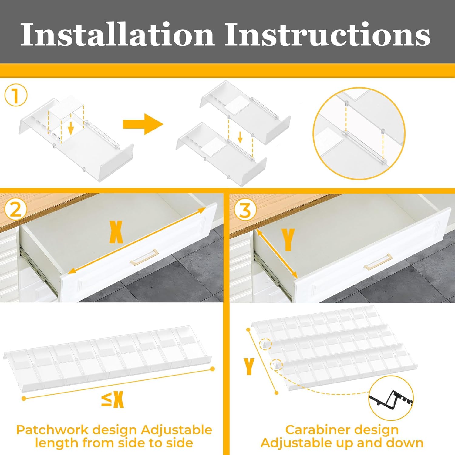 - Easy Assembly: No Tools Required! Our drawer spice rack is easy to install and use. Simply place the inserts in your drawer and adjust it to the desired size. Keep your countertop neat and tidy.