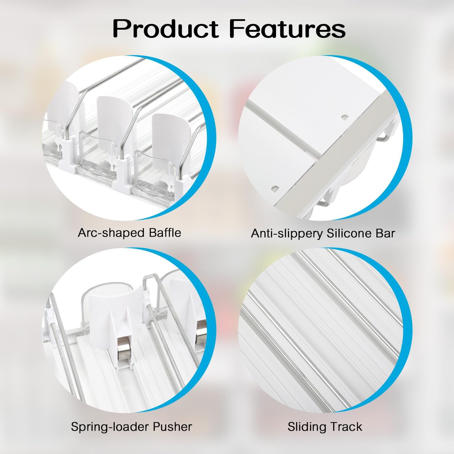 - 【Automatic Propulsion Design】 Spring-loaded drink organizer keeps your beverage cans always in the front position automatically, saves your space and ensures orderly storage and easy access to your drinks. This can storage rack can be widely used in refrigerators, garage coolers, commodity shelves, supermarkets or vending machines, etc.