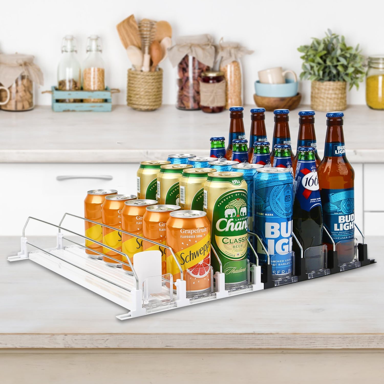- 【Widely Use】 BEHANT can organizer is versatile to hold different types of beverages, including cans and bottles like coke, juice, soda water, beer, and wine. It can be used in refrigerators, coolers, shelves, pantry, counter, desk, supermarkets, and vending machines. It's the perfect solution for keeping your drinks organized and easily accessible.