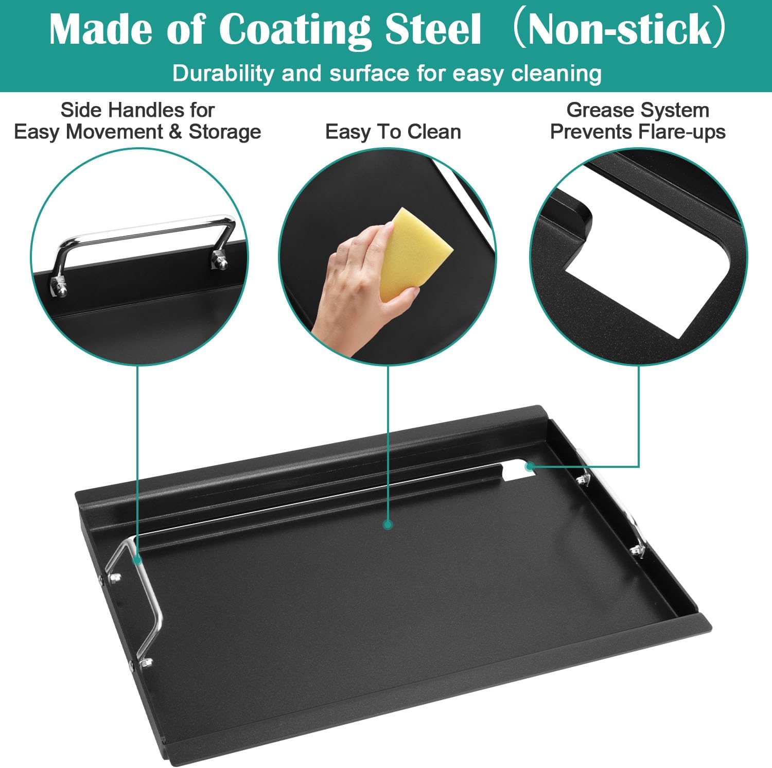 - 【Features】The inserts griddle is closer to the fire source and heats up more easily than other griddles placed on the grates to achieve the temperature needed to cook delicious food. Before use, please remove the grate & emitter plates to achieve closer to the heat source. The surface of the baking pan is made of coating, durable and easy to clean, need to be heated and oiled 1-2 times before use for better results.