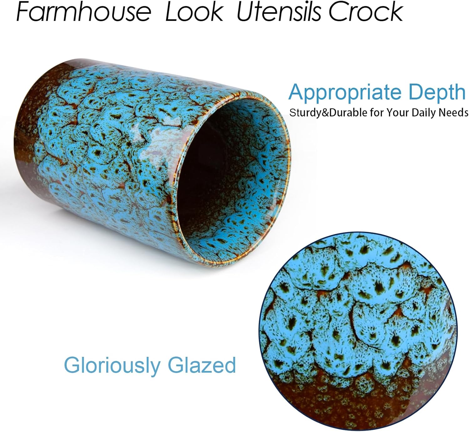 Utensil Holder, Ceramic Kitchen Utensil Holder for Countertop, Large Cooking Utensil Crocks for Kitchen Counter, Morden Utensil Organizer for Spatula, kitchen Decor,Blue