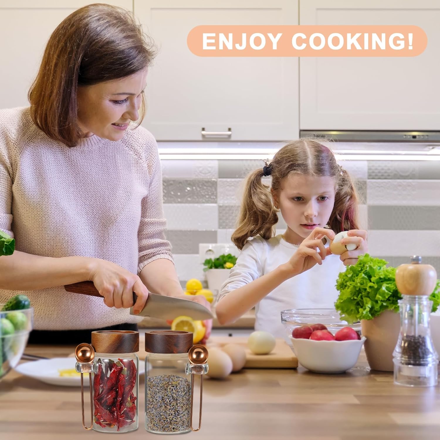 8oz Small Glass Spice Jar with Spoon Coffee Sugar Container Airtight Food Storage Canisters Bottle for Kitchen Seasoning Tea Herb Overnight Oats Bar(2×250ml(8.4oz))