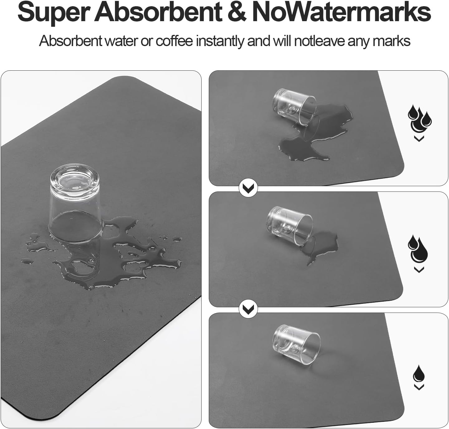 - 【Quick Absorption】 The soft diatomite dish drying mat instantly absorbs any liquid without staining your countertop.