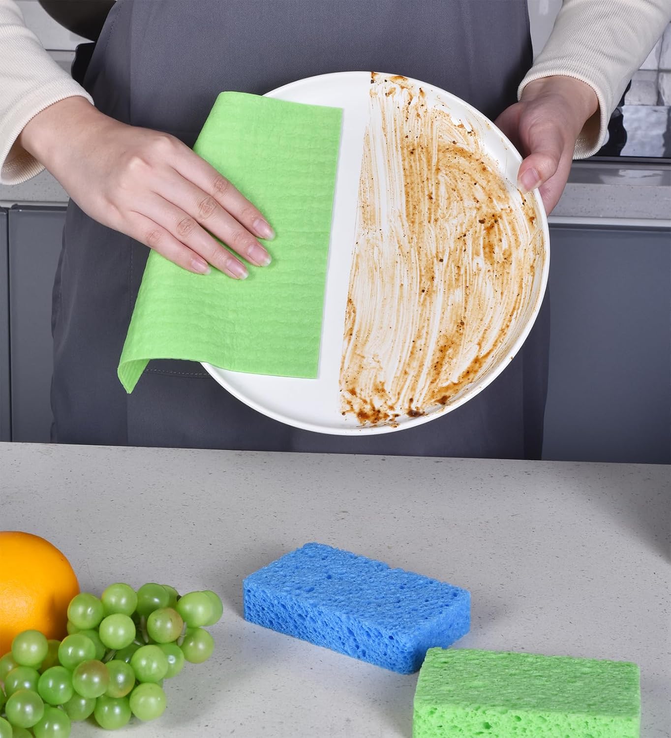 - 【Reusable & Long-sasting】: The compressed dish sponges and Swedish dish cloths are multi-purpose use with magic absorbent, durable, reusable and long-lasting.