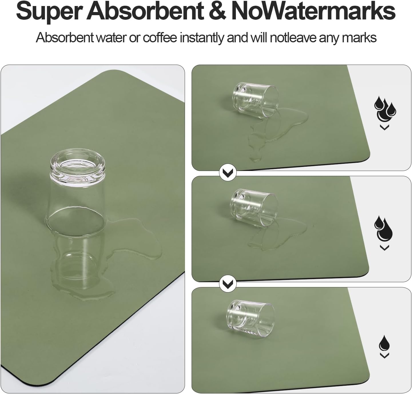 - 【Quick Absorption】 The soft diatomite dish drying mat instantly absorbs any liquid without staining your countertop.