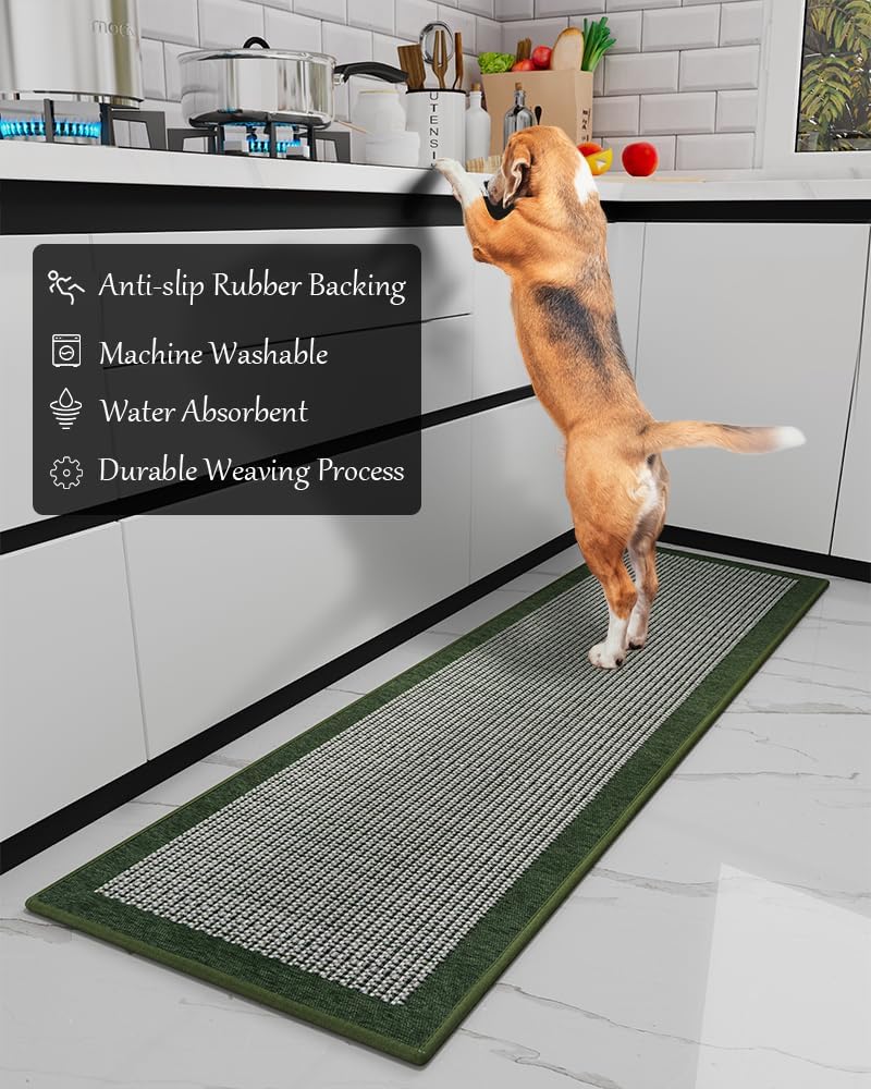 PADOOR Kitchen Mats for Floor, Kitchen Rugs Non Slip Washable, Rubber Backed Kitchen Runner Super Absorbent Kitchen Floor Mat Sink Rug, 20"x47" Green