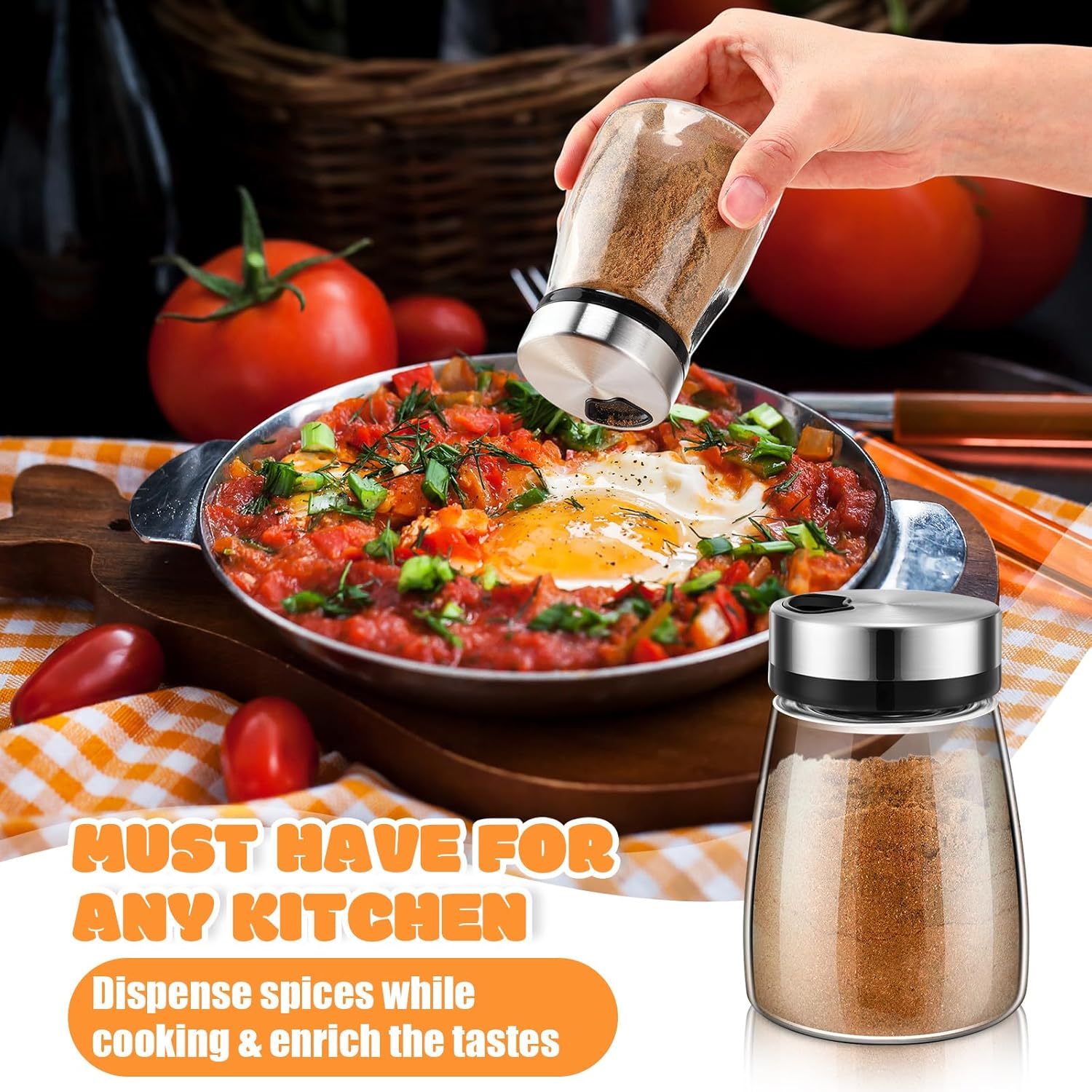 - Sturdy for Long Time Use: this salt or pepper shaker set is made of glass, which is sturdy, durable, safe, odorless and not easy to deform or fade, suitable for your long term use; Please note that if there is water on the product, please wipe it with a dry cloth, keeping the spice bottles dry can prevent the seasoning from getting damp and clumping