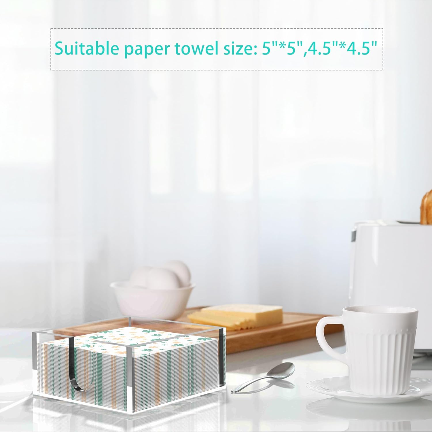 Rubtlamp 1Pcs Acrylic Cocktail Napkin Holder - 0.27Inch Thickness Bathroom Napkins Holder - Square Tissue Dispenser - Luncheon Napkins Holder for Table and Kitchen (Clear, 5.5”X5.5”X2.5”)