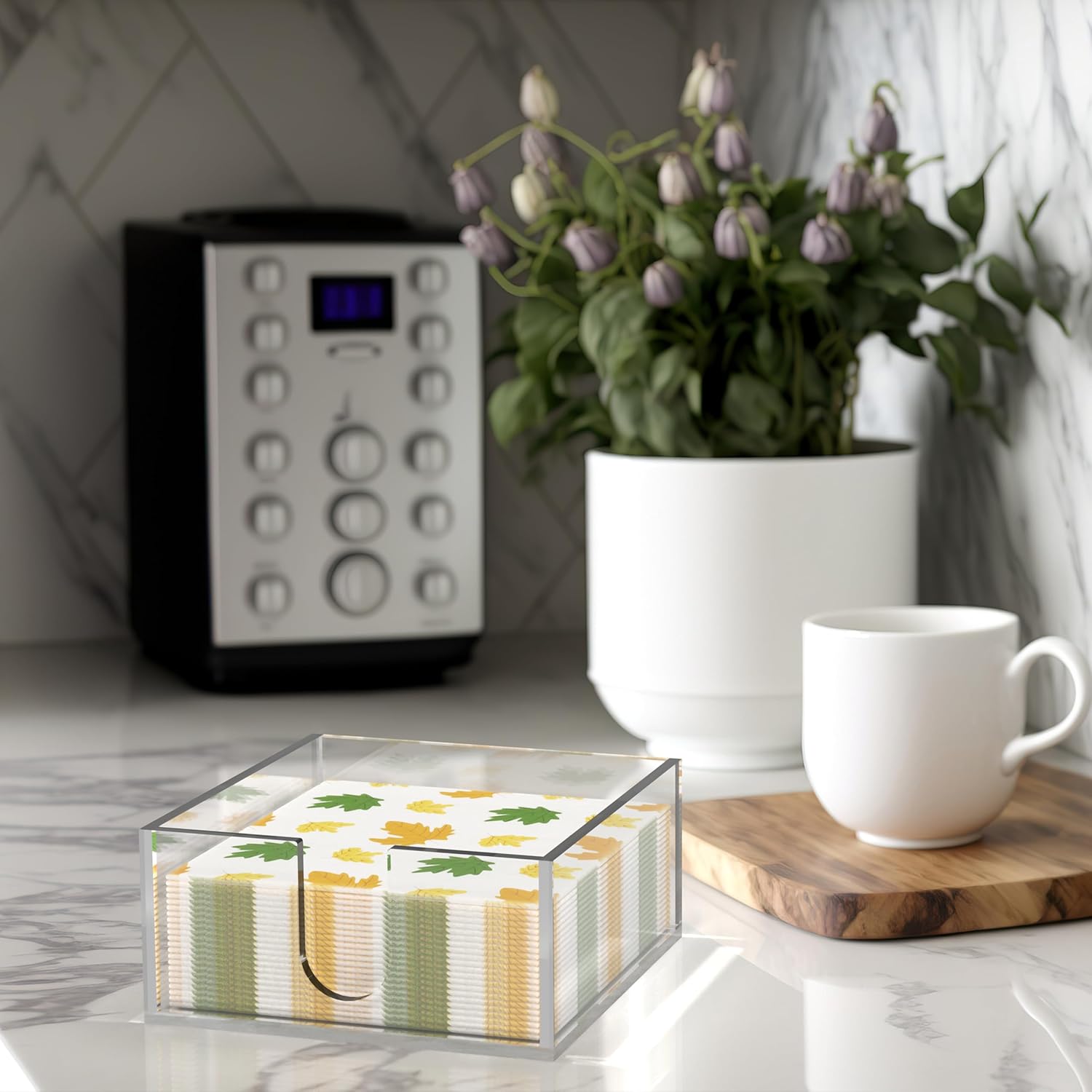 - Why choose us: Our bathroom napkin holder is made of high-quality acrylic that is 5mm thick and looks like glass but is not fragile, making it safer, stronger, and easier to clean than glass. In addition, it does not oxidize or rust over time like iron, making it perfect for indoor or outdoor use.