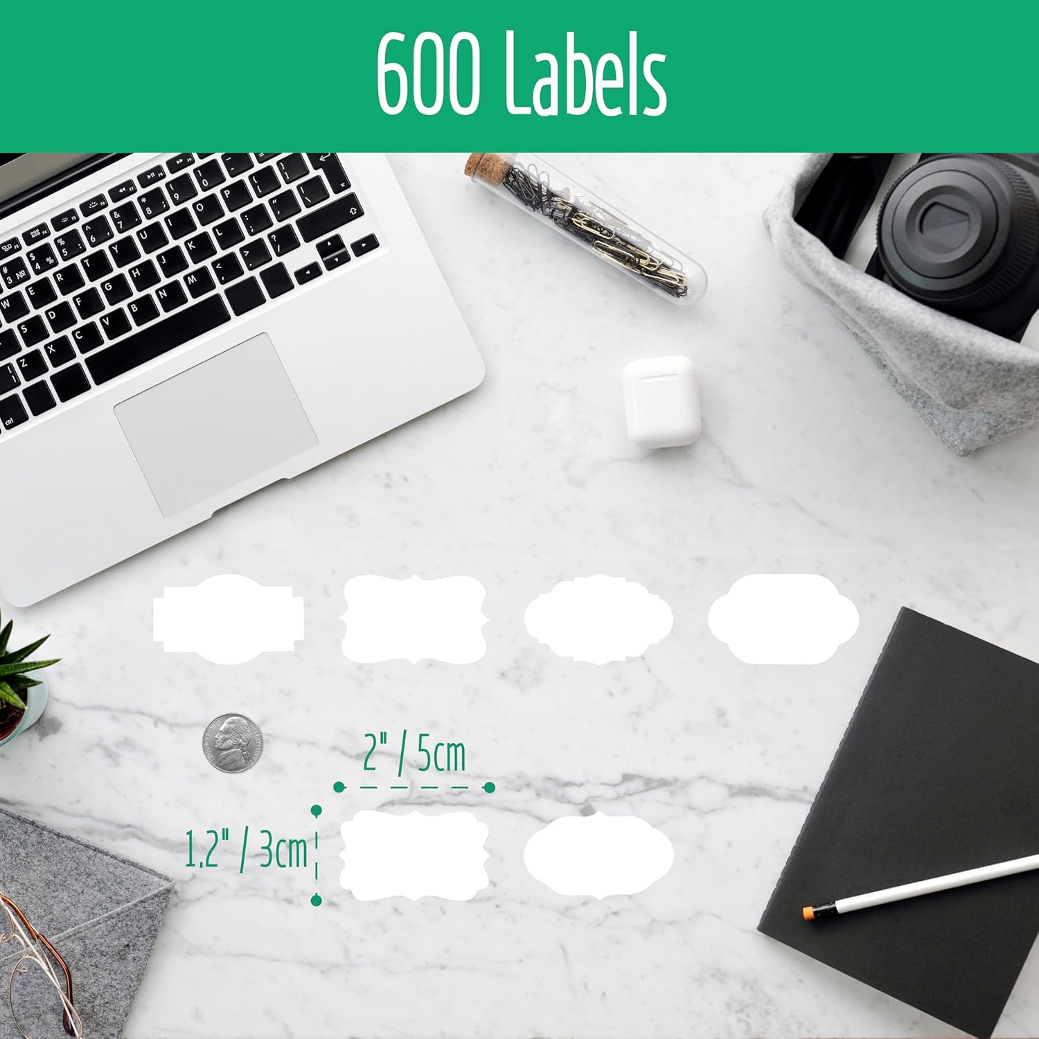 600 PCS Kraft Paper Stickers, 6 Fancy Shapes Labels Self Adhesive Blank Stickers for Crafts, Homemade Food Jars, Gift Tags, Name Labels, Envelope Labels, Home Office Business Uses (White, 1.2” x 2”)