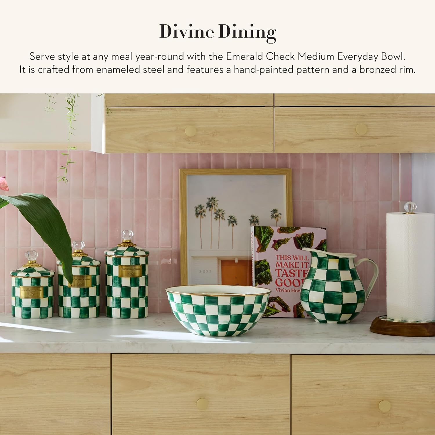 MACKENZIE-CHILDS Enamel Everyday Bowl, Serving Bowl for Entertaining, Medium, Green-and-White Emerald Check