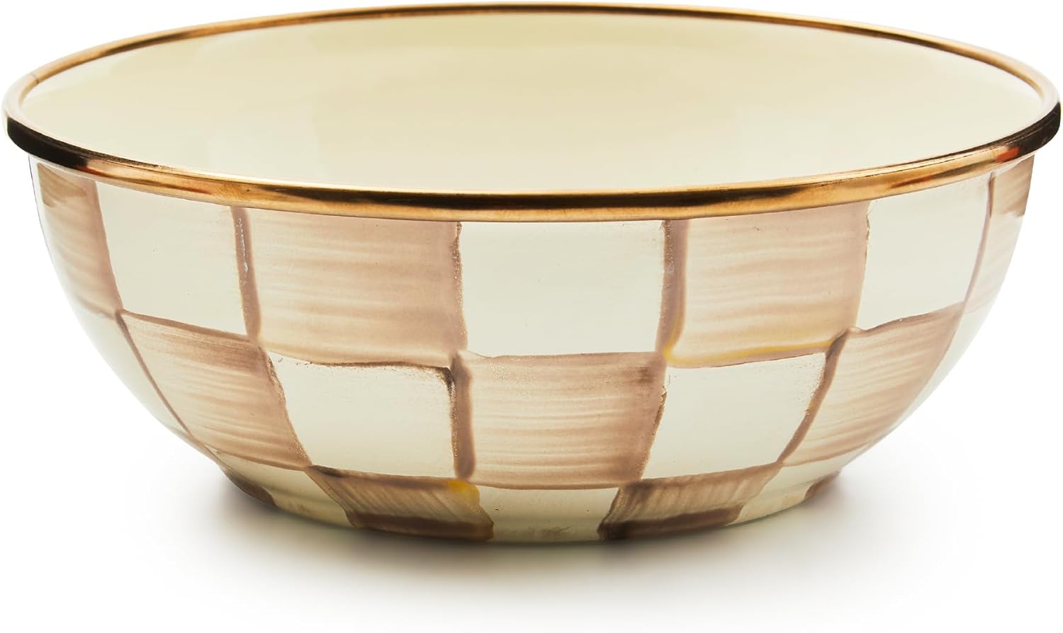 MACKENZIE-CHILDS Enamel Everyday Bowl, Serving Bowl for Entertaining, Extra Small, Brown-and-White Mocha Check