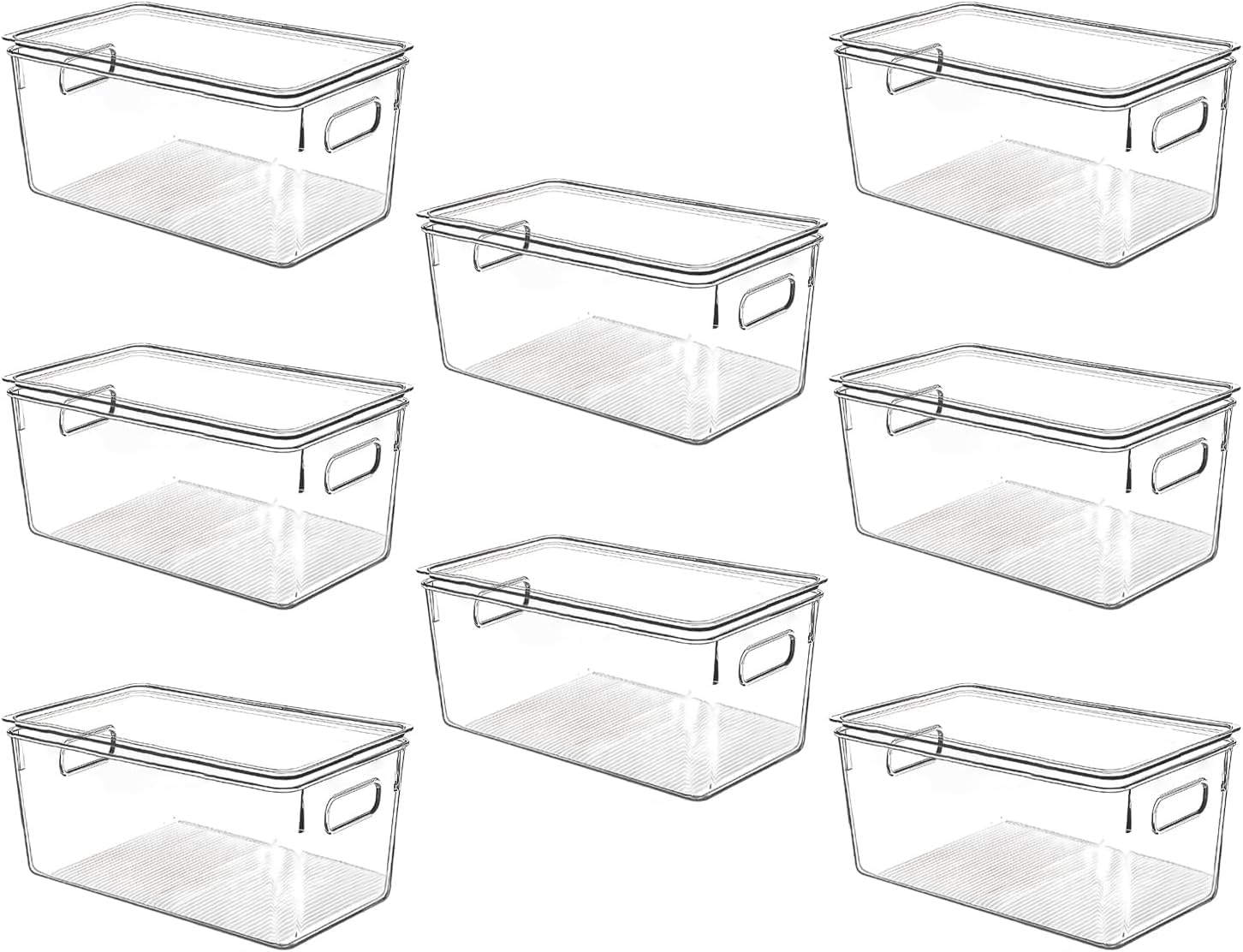Clear Plastic Storage Bins with Lids, Perfect for Kitchen Organization or Pantry Organization and Storage, Stackable Fridge Organizer Bins, Storage Containers for Organizing, Cabinet Organizers