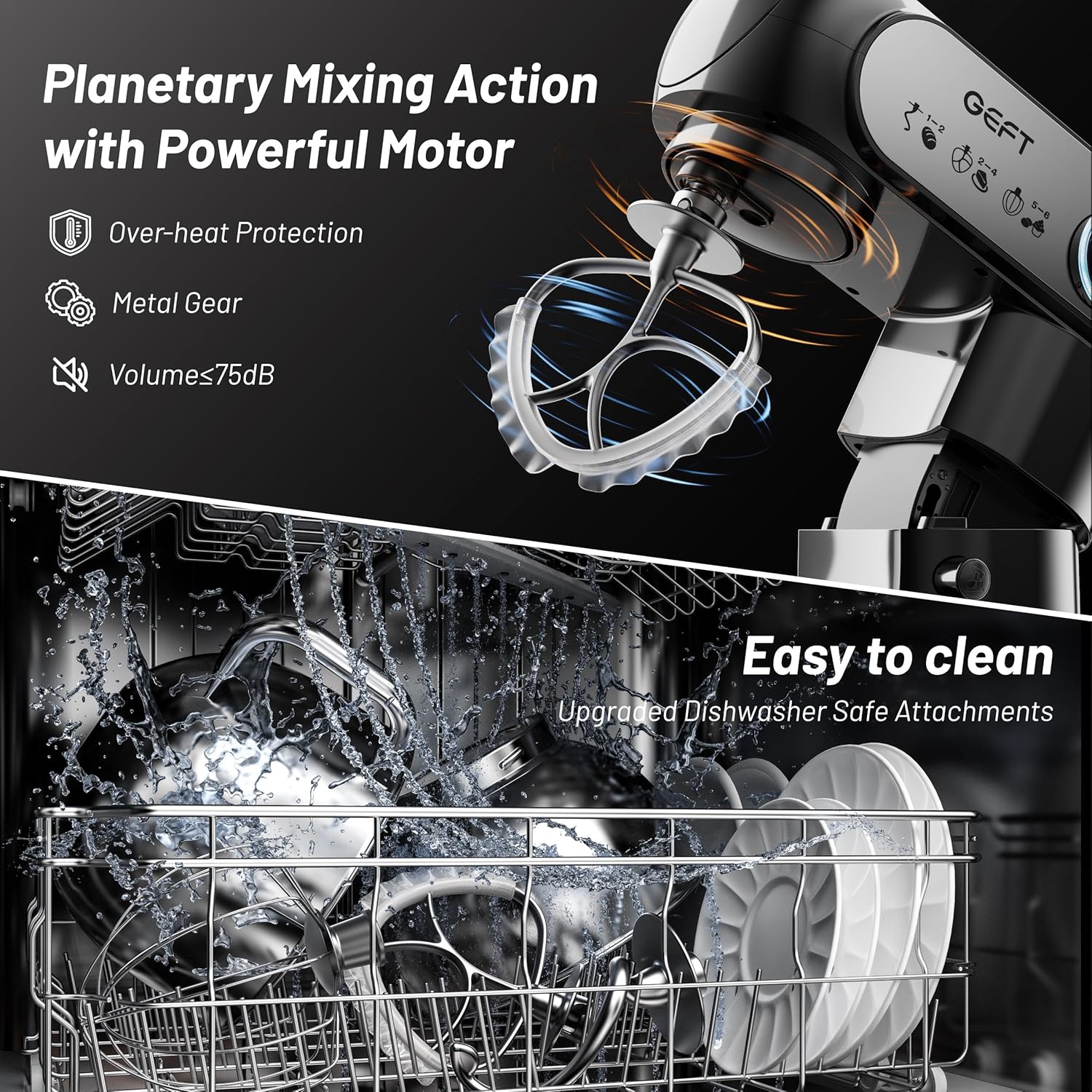 - Dishwasher-Safe Accessories: The upgraded food-grade Teflon coating ensures our dough hook, whisk, beater, and two stainless steel bowls are safe for both dishwasher cleaning and hand washing. Non-toxic and BPA-free materials prioritize your family’s health. Note: The pouring shield is NOT dishwasher safe.
