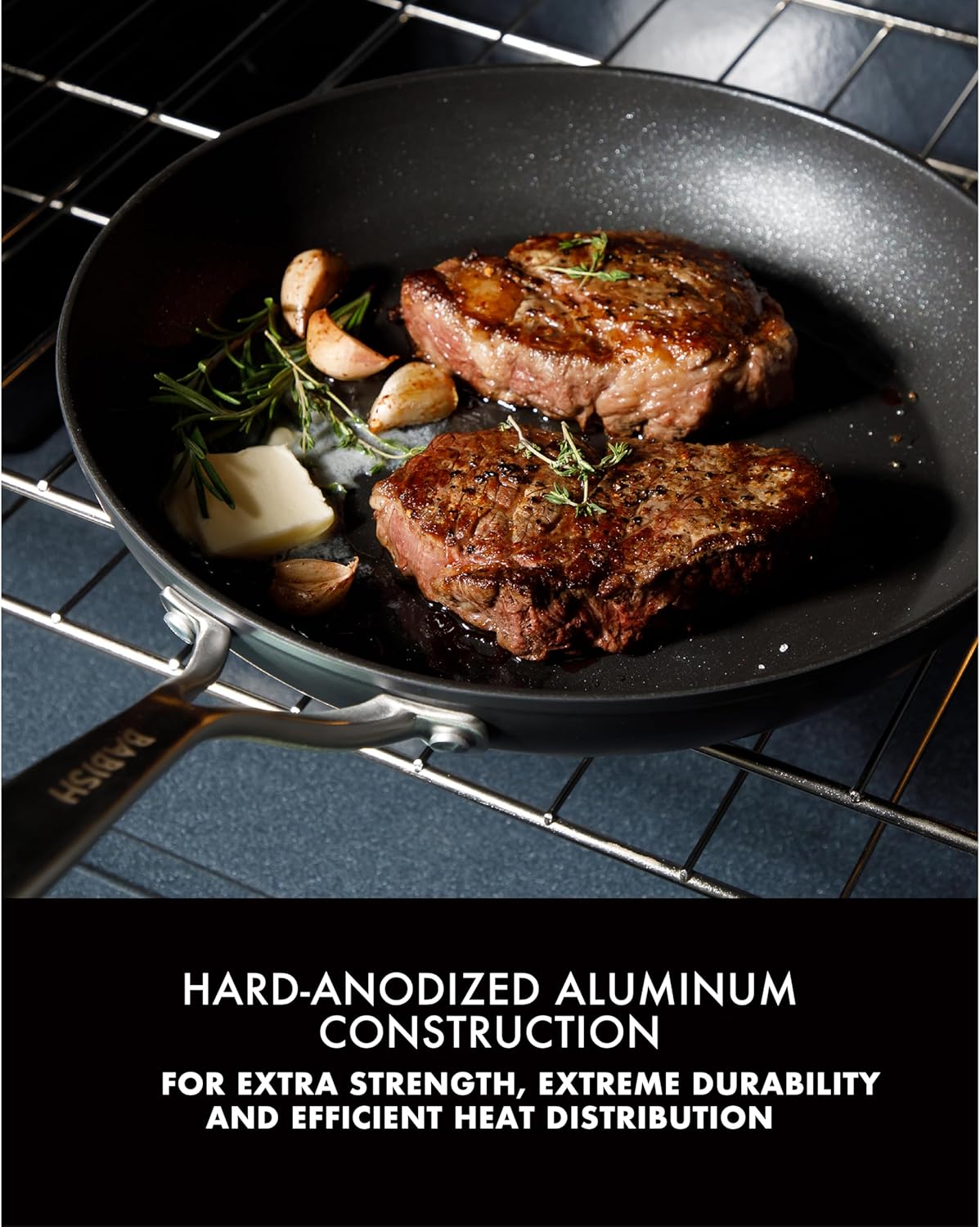 Babish 10 Piece Hard Anodized Laser Titanium Forever Non Stick Technology Durable Pots and Pans Cookware Set - Black
