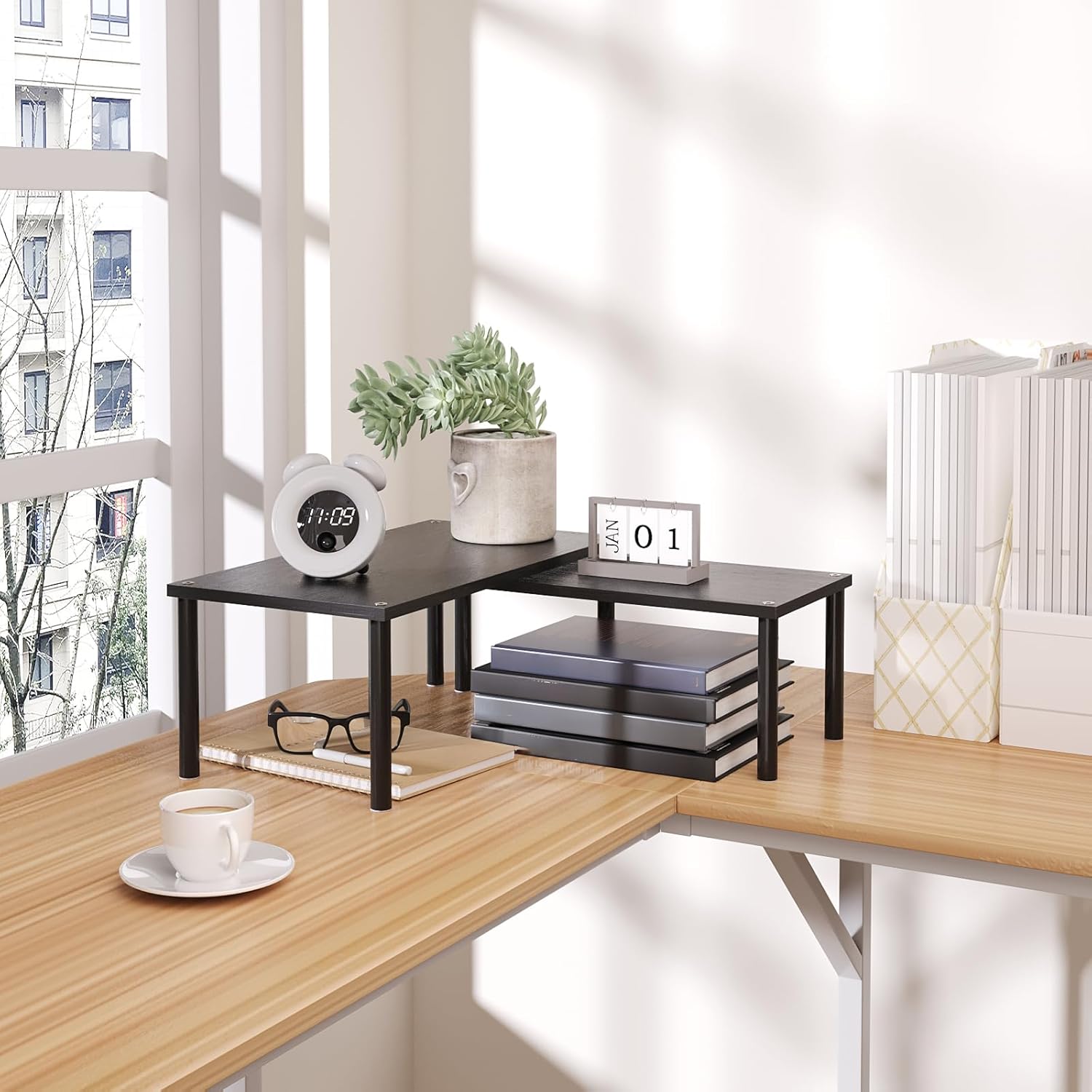 - 【Flexible Combination, Space Optimization】With their unique design, with one slightly smaller than the other, these shelf organizers can be stacked on top of one another, nested, used separately, or even in an L-shape.It is a flexible storage solution that transforms your kitchen into a more organised and tidy space.