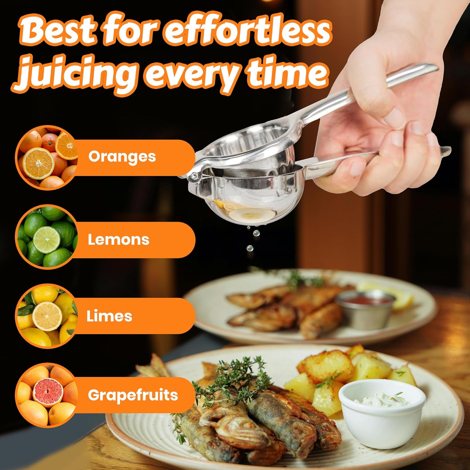 - PREMIUM STAINLESS STEEL LEMON SQUEEZER: Crafted from durable 304 stainless steel, this premium lemon squeezer ensures long-lasting performance. Rust-resistant, corrosion-proof, and built to handle daily use with ease.