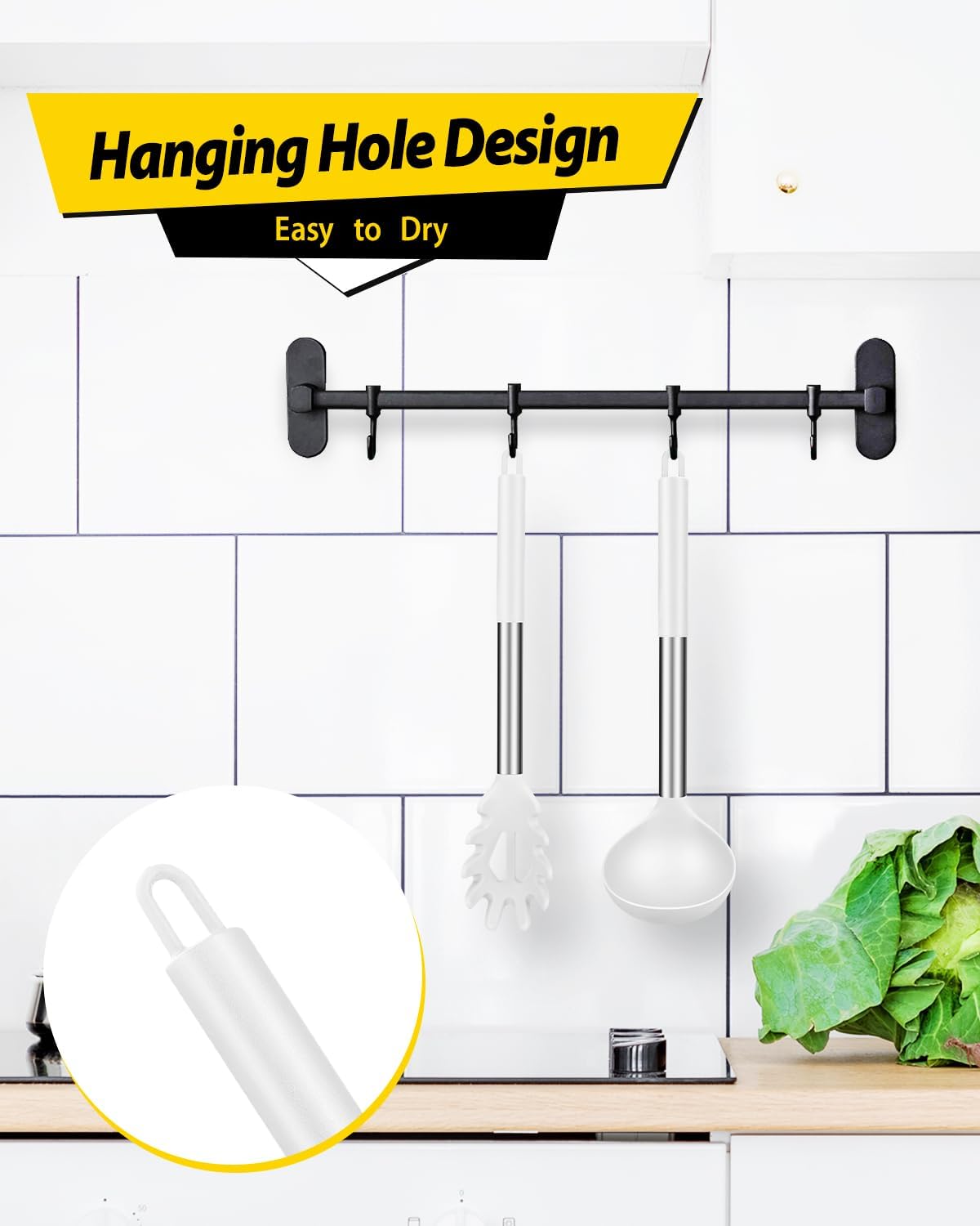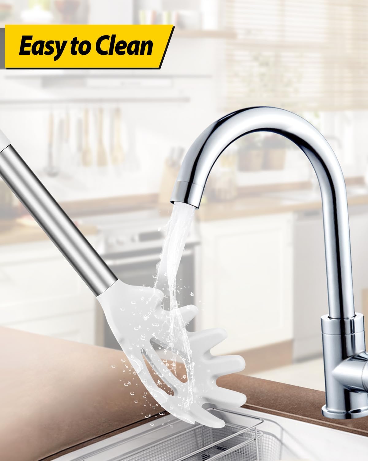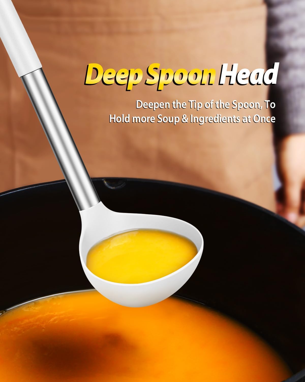 - Thoughtful Design : The good-quality 18/8 stainless steel keeps you away from the trouble of kitchen utensils rusting or breaking; This anti-scald silicone handle is not easy to conduct heat and is more comfortable to hold than traditional utensils