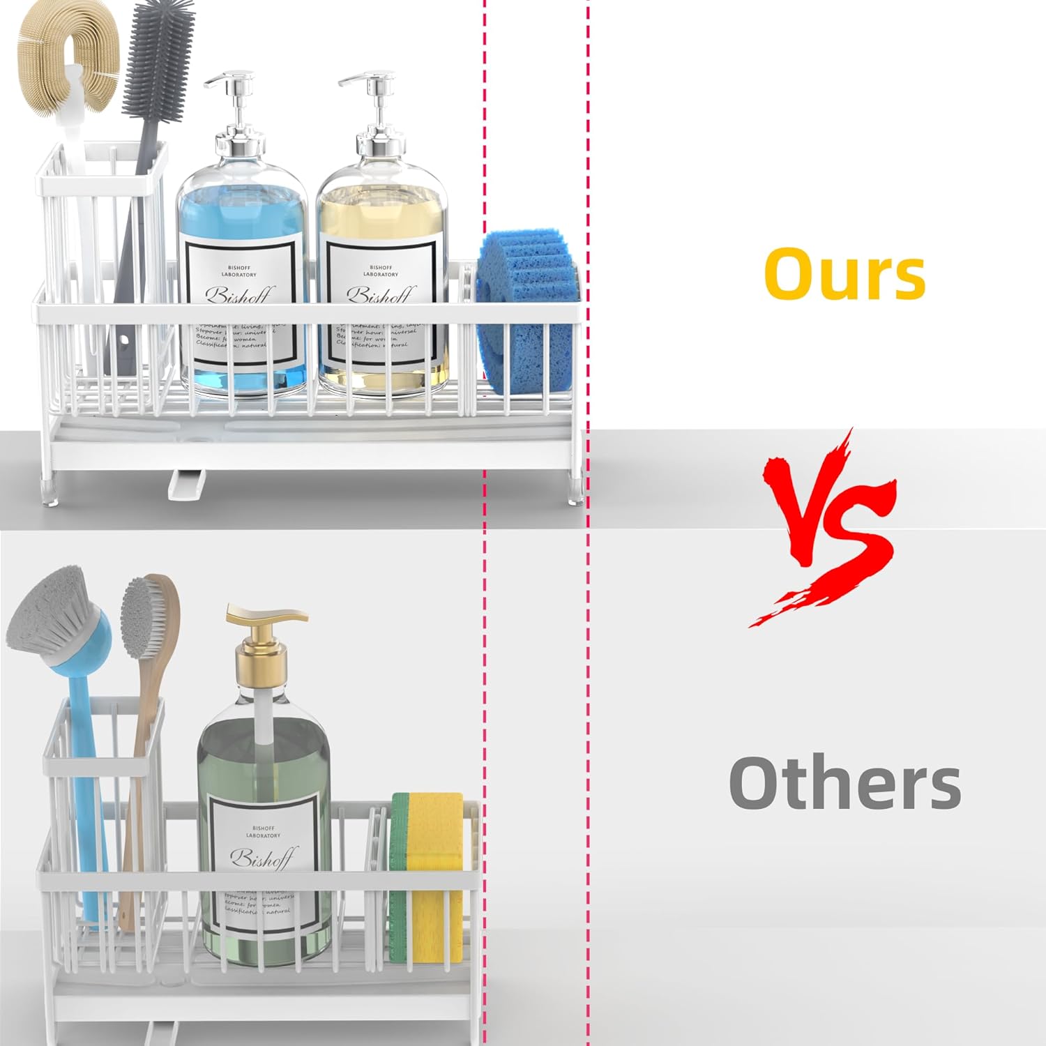 Moforoco Extra Large Kitchen Sink Caddy, Rustproof Sponge Holder for Kitchen Sink with High Brush Holder, Stainless Steel White Kitchen Caddy Sink Countertop Organizer, Sponge Caddy for Kitchen Sink