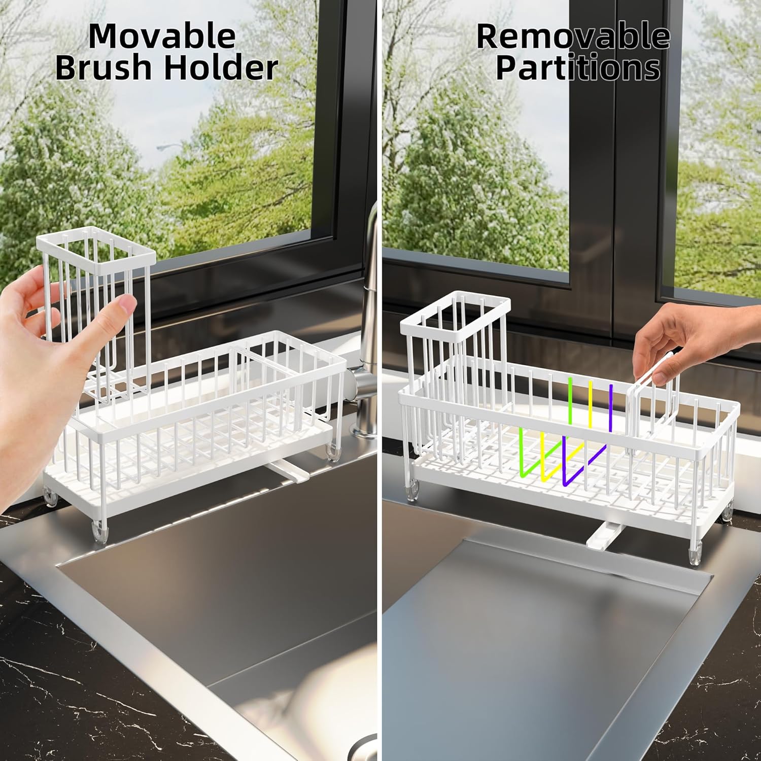 - ăBRUSH STORAGE RACKăThe higher brush storage rack allows your brushes to be better stored without falling. The kitchen sink caddy can be used after receiving it, no installation is required, and it is widely used on sink countertops or bathrooms. It is a satisfying gift.