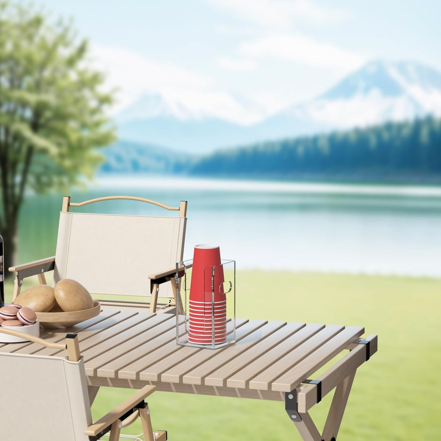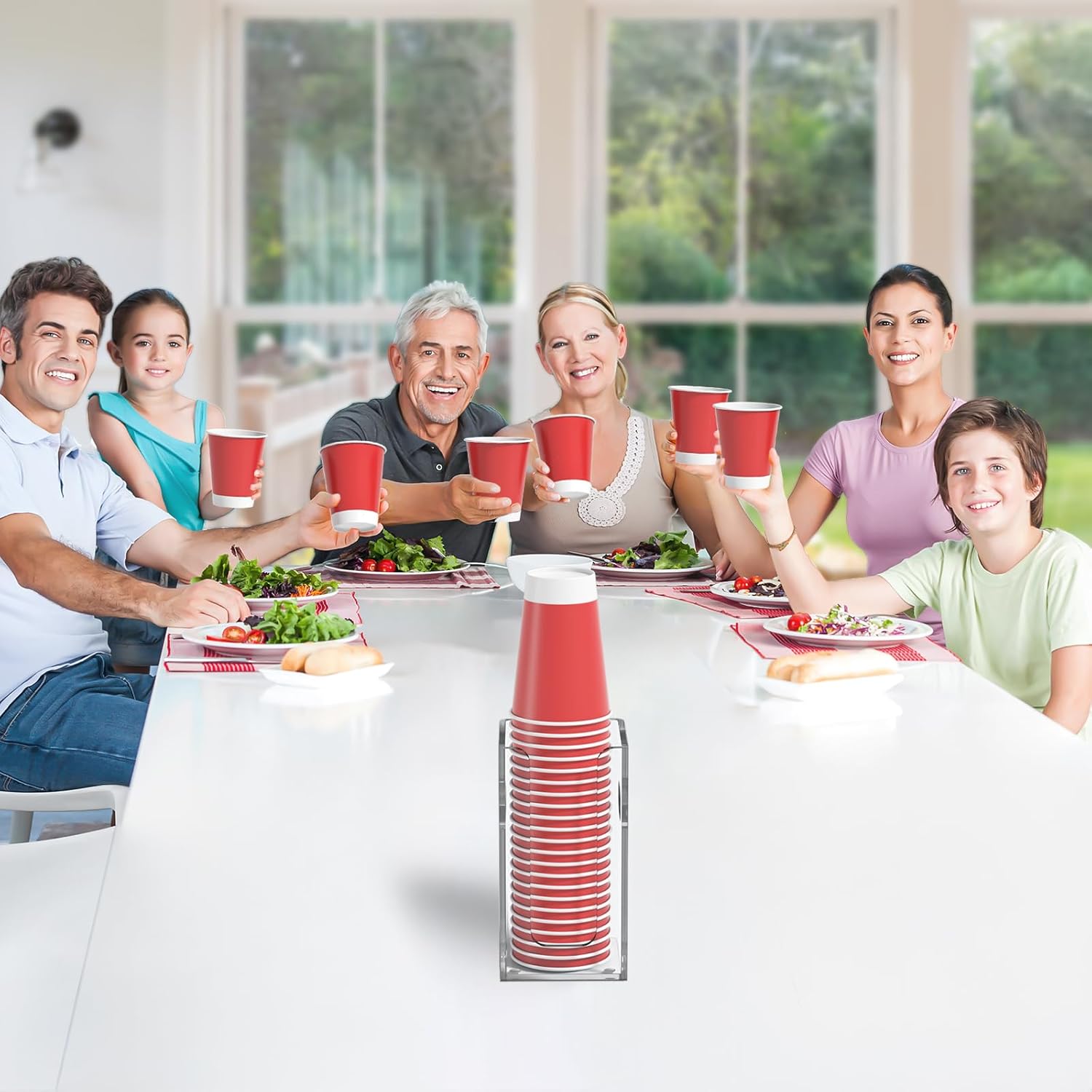 WINFFOR Disposable Cup Organizer Dispenser - Clear Acrylic Cup and Lid Holder with Handles Plastic Cup Dispenser Countertop Paper Coffee Cup Holder for Coffee Bar House Party Essentials