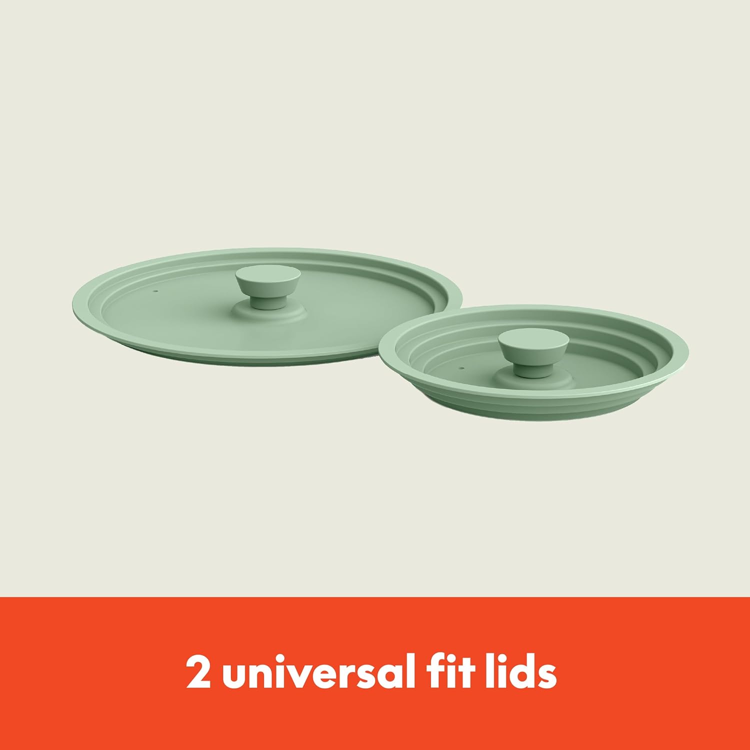 - Universal Lids: Simplify your kitchen with two universal lids that fit all the vessels in this pan set. These durable aluminum lids reduce clutter and streamline your cooking process, so you can focus on crafting your favorite dishes effortlessly