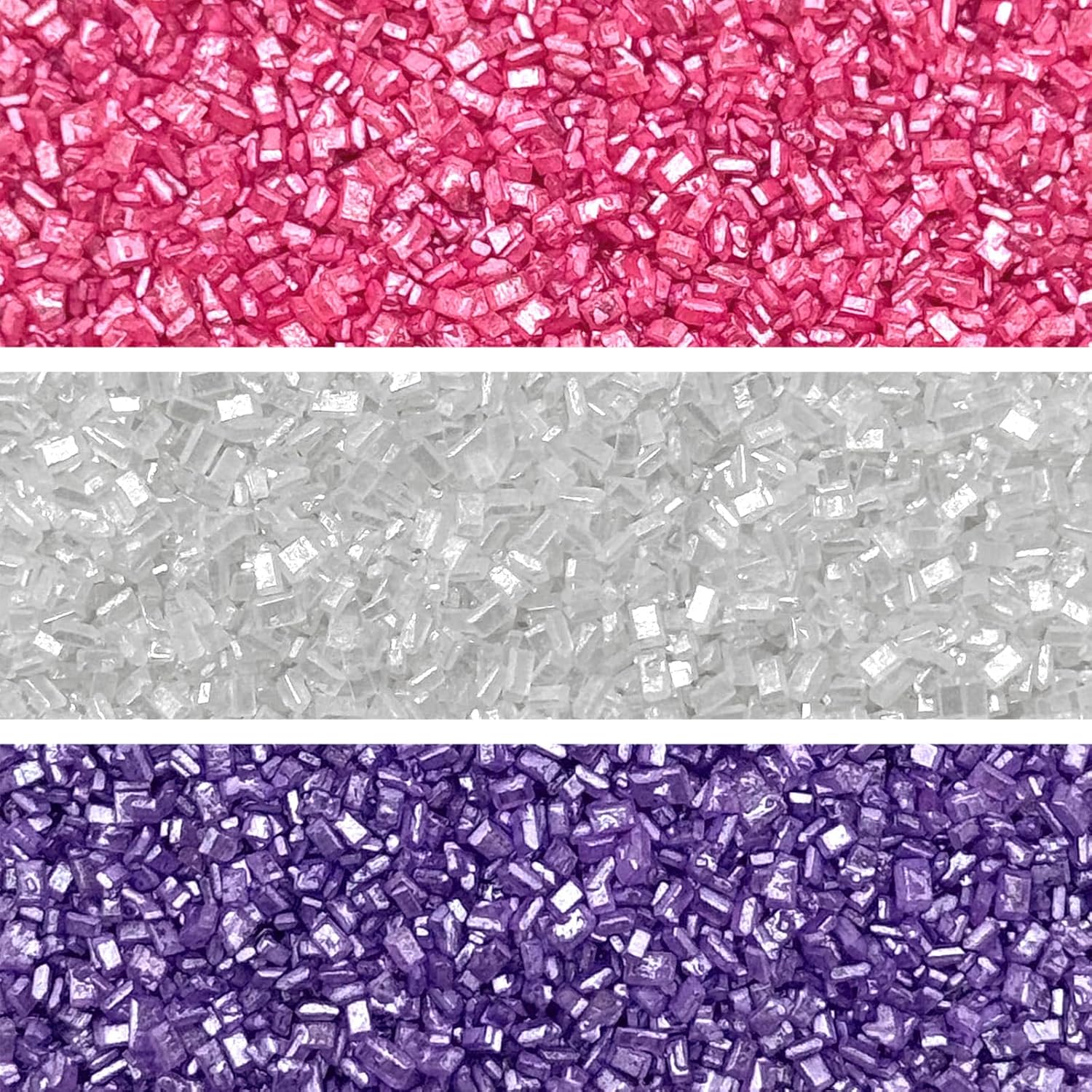 Fancy Sprinkles Total Flirt Sugar Set with Fancy Purple Tote Bag Fancy Sugar Pearlescent, Sparkly Sugar Crystals (Amethyst Purple, Tourmaline Pink and Diamond White) (8 OZ)