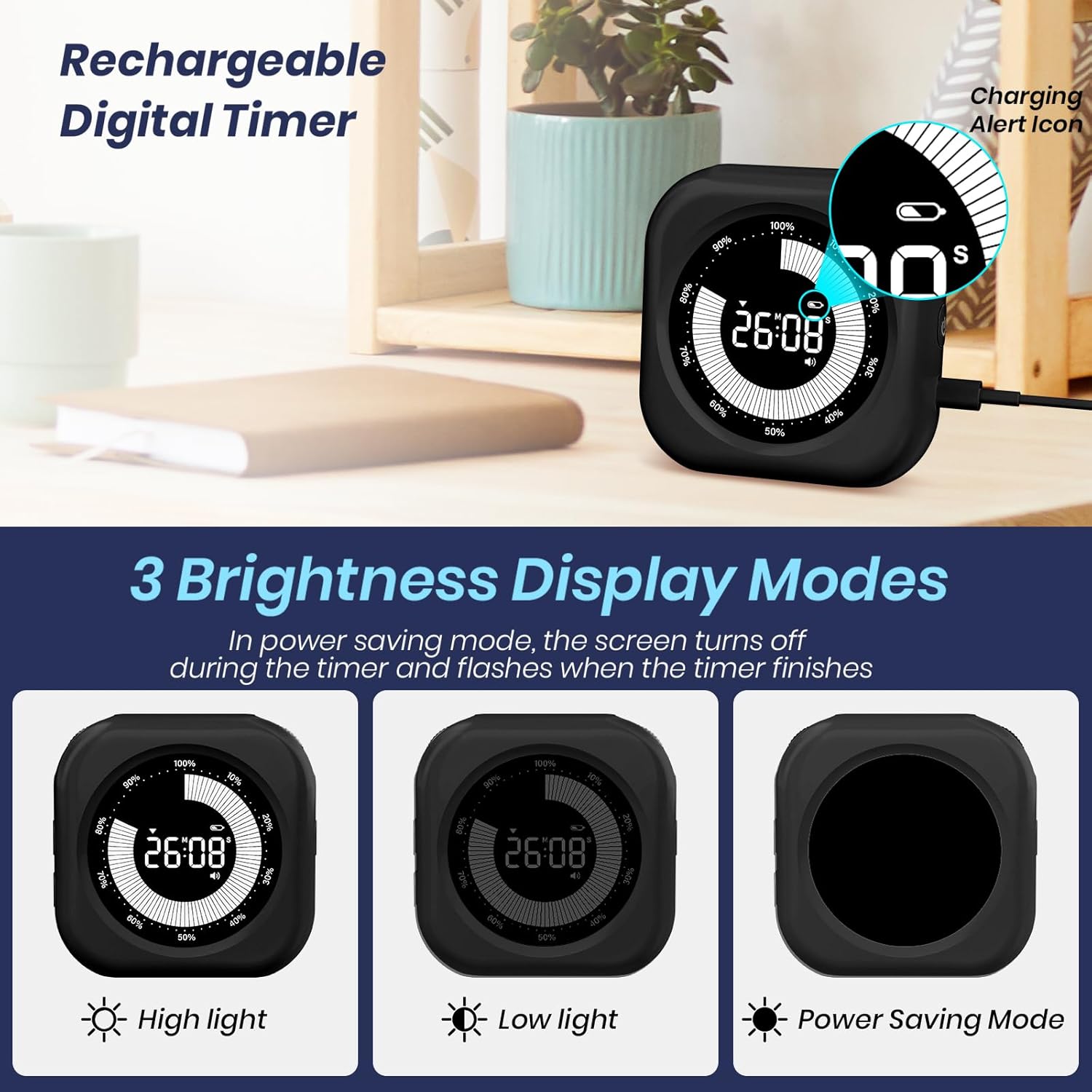 Visual Timer for Kids, 10 Hours Countdown/Up, with Rechargeable, 3 Volume Levels,3 Brightness Display, and Magnetic, Homeschool Study Tool, Large Digital Timers for Classroom, Kitchen