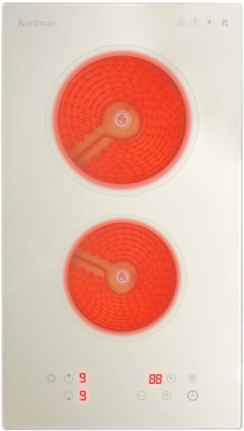 Karinear 2 Burners Electric Cooktop, Beige-gray Glass Electri Cermaic Stove, 12 Inch Built-in Electric Stove Top with Timer, Child Safety Lock, 9 Power Levels, 3200W, 220V-240V Hardwire(no plug)
