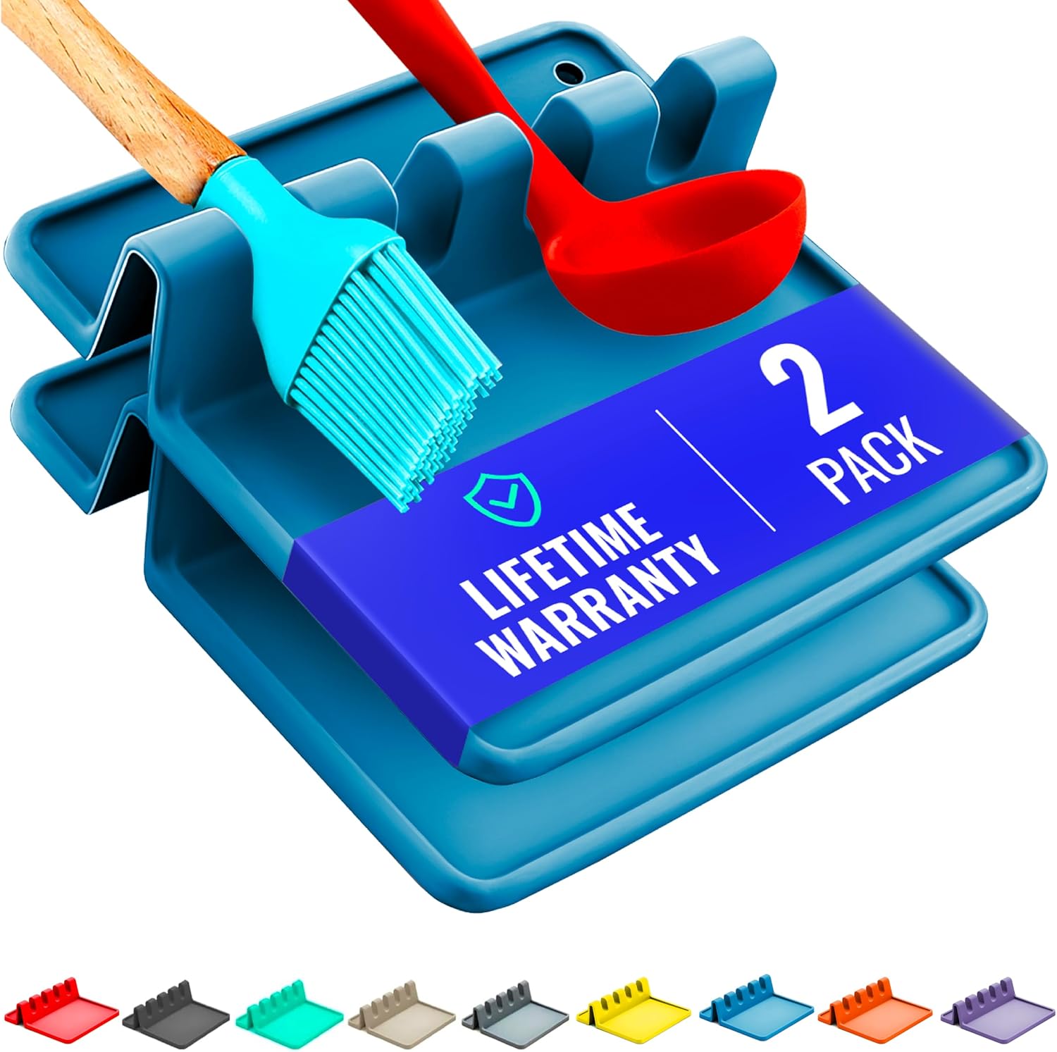 - QUALITY SILICONE TO STAND THE TEST OF TIME: Made from a durable, dishwasher friendly, food grade silicone, our sturdy space friendly spoon rack is the ideal tool to keep counters neat and organized while cooking. The silicone material ensures that food washes off easily, making clean up a breeze with or without a dishwasher. The flexible material ensures that this kitchen spoon rest will hold up to heavy duty usage for years to come without shattering or cracking like most ceramic spoon rests.