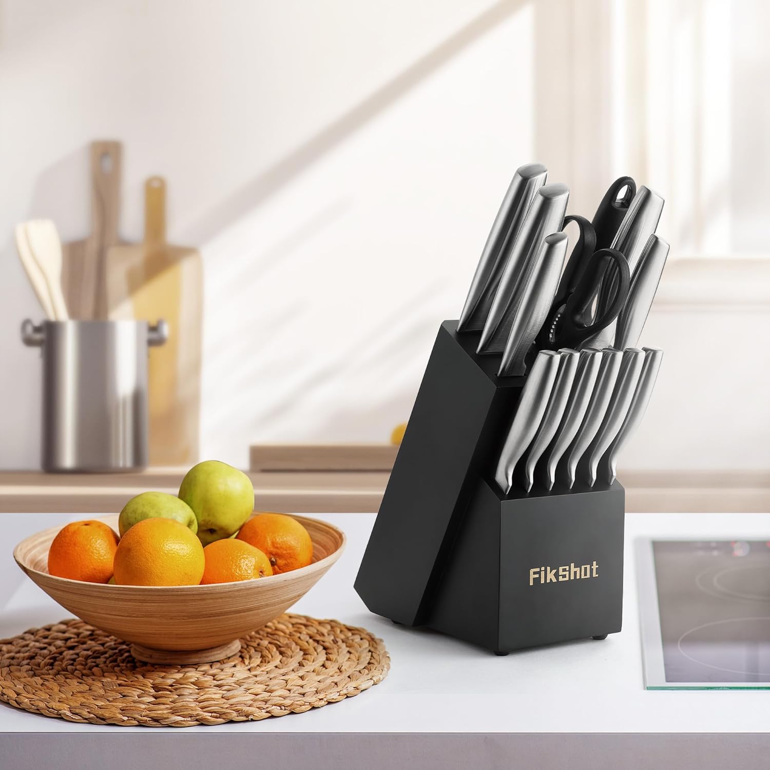 Kitchen Knife Set, FIKSHOT Premium Stainless Steel Knife Block Set, Razor-Sharp Santoku Knife and Fruit Knives, Gift for Homecooks, Rust-Proof, Designed for Women