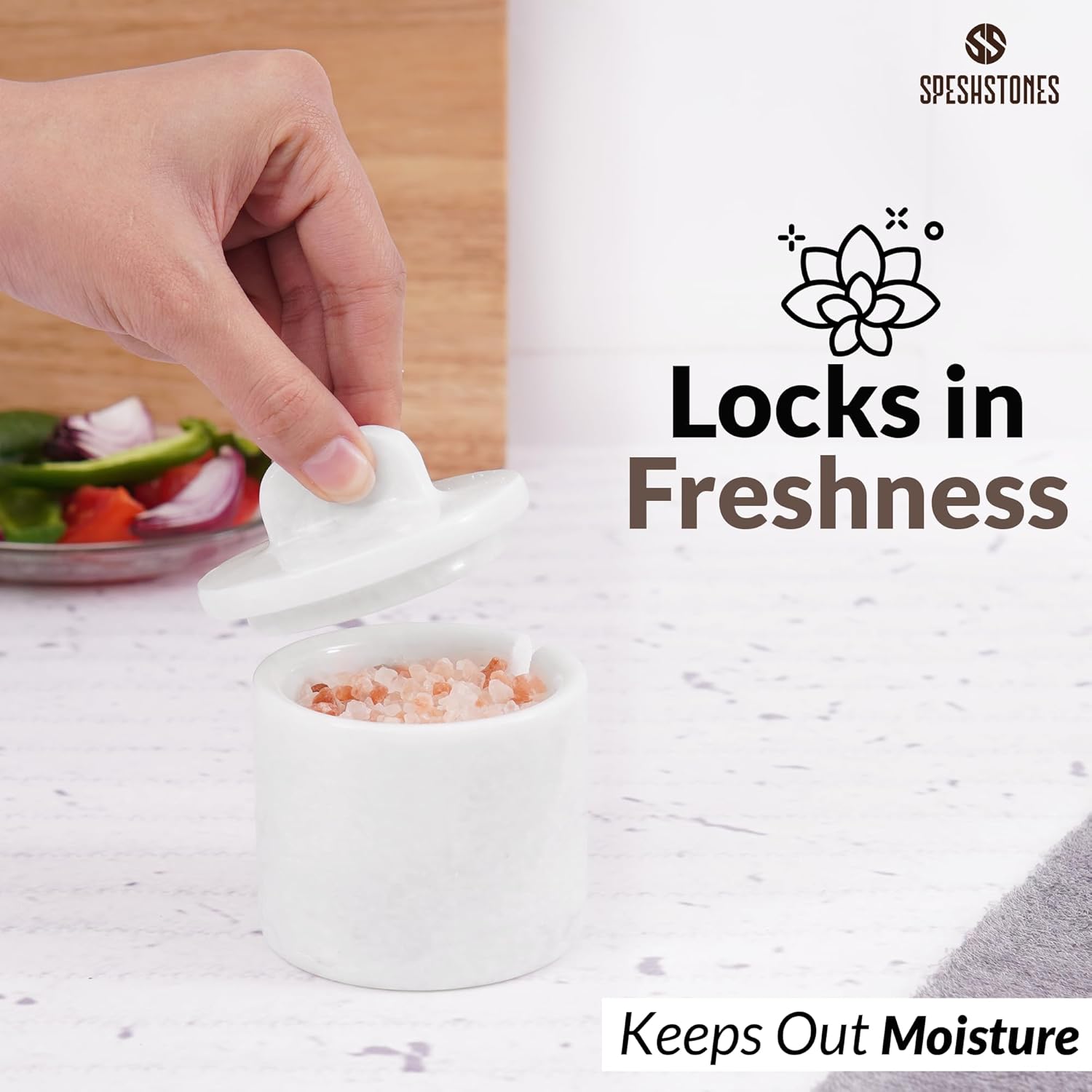 - WHAT IS INCLUDED - 1 x Marble Salt Cellar with Lid and Spoon. Comes along with SPESHSTONES Branded Secure and Fragile Packaging.