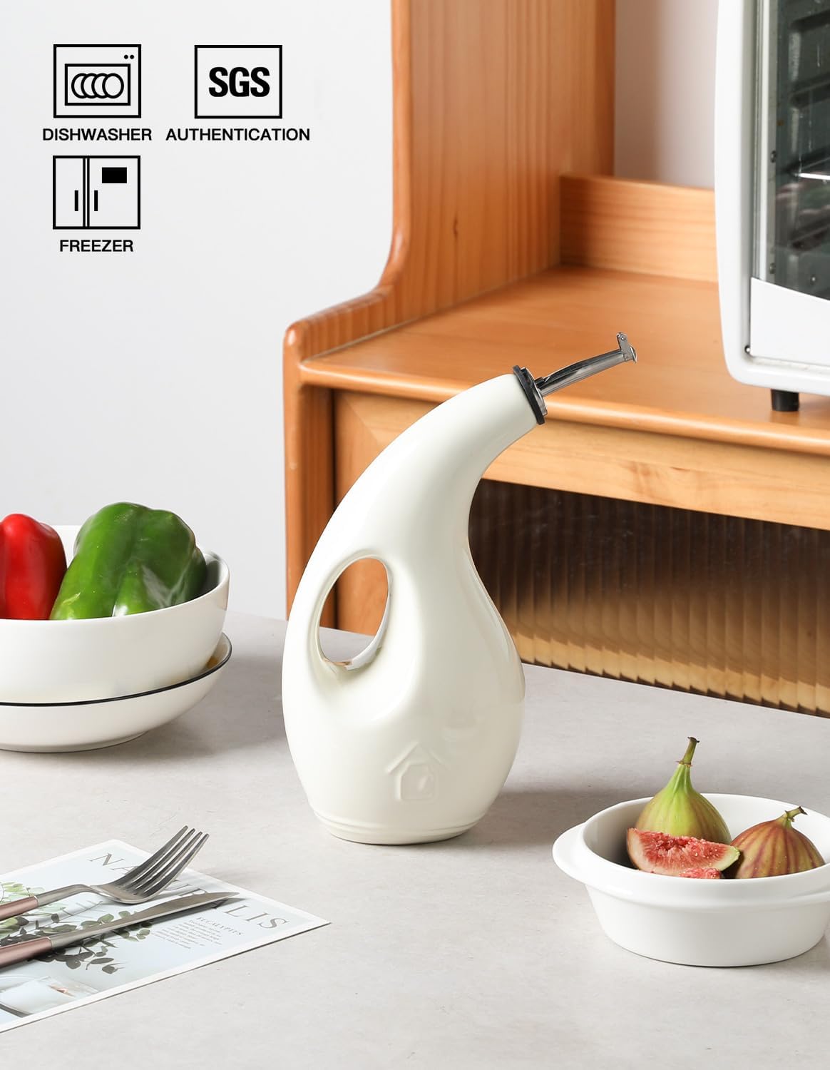 Sweejar Ceramic Olive Oil Dispenser Bottle,24 Oz Opaque Cruet Protects EVOO Oil to Reduce Oxidation, Suitable for Storage Vinegar, Coffee Syrups, Liquids (Beige)