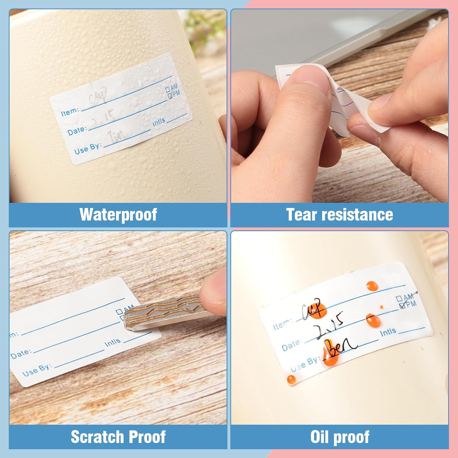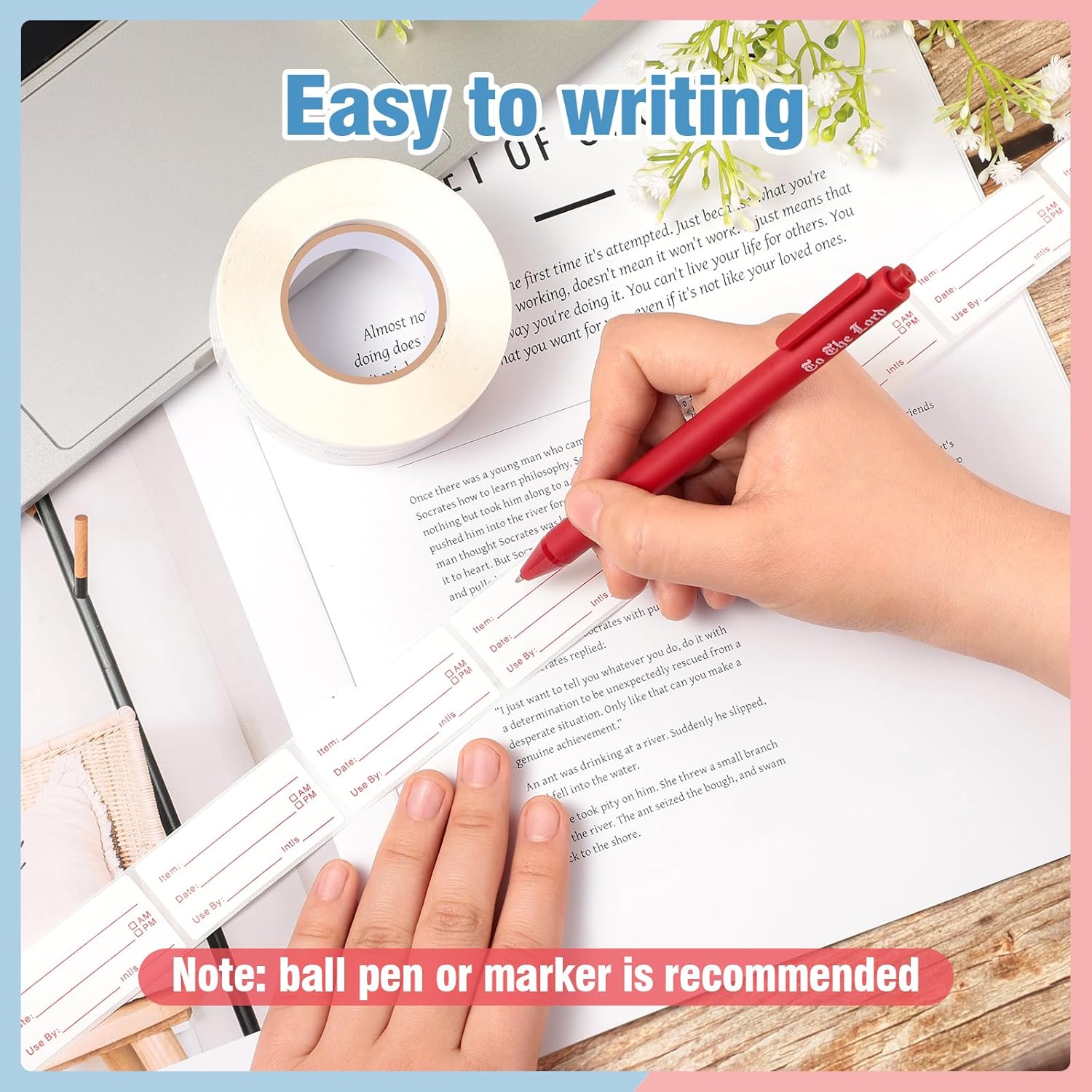 4 Rolls 2000 Pieces Removable Food Labels, 1 x 2 Inch Date Stickers for Freezer, Refrigerator Food Containers - Easy to Write On
