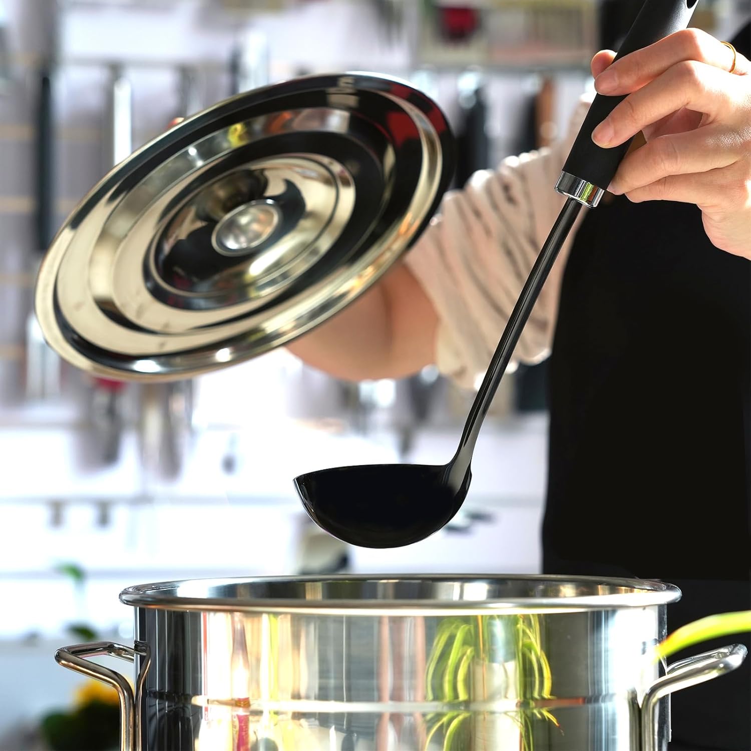 - Dishwasher safe: easy to clean, just throw the stainless steel soup ladle in the sink and you're done! Design with a built-in hanging hole for easy storage after use.